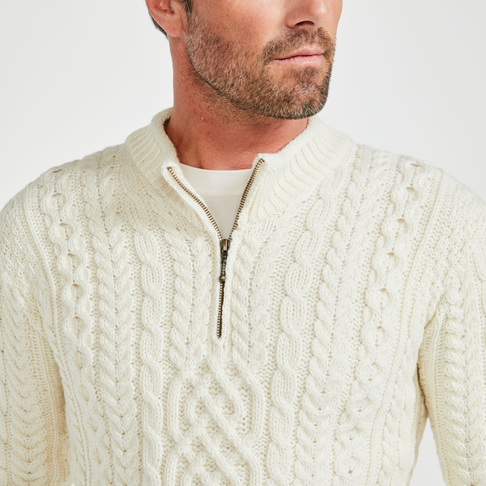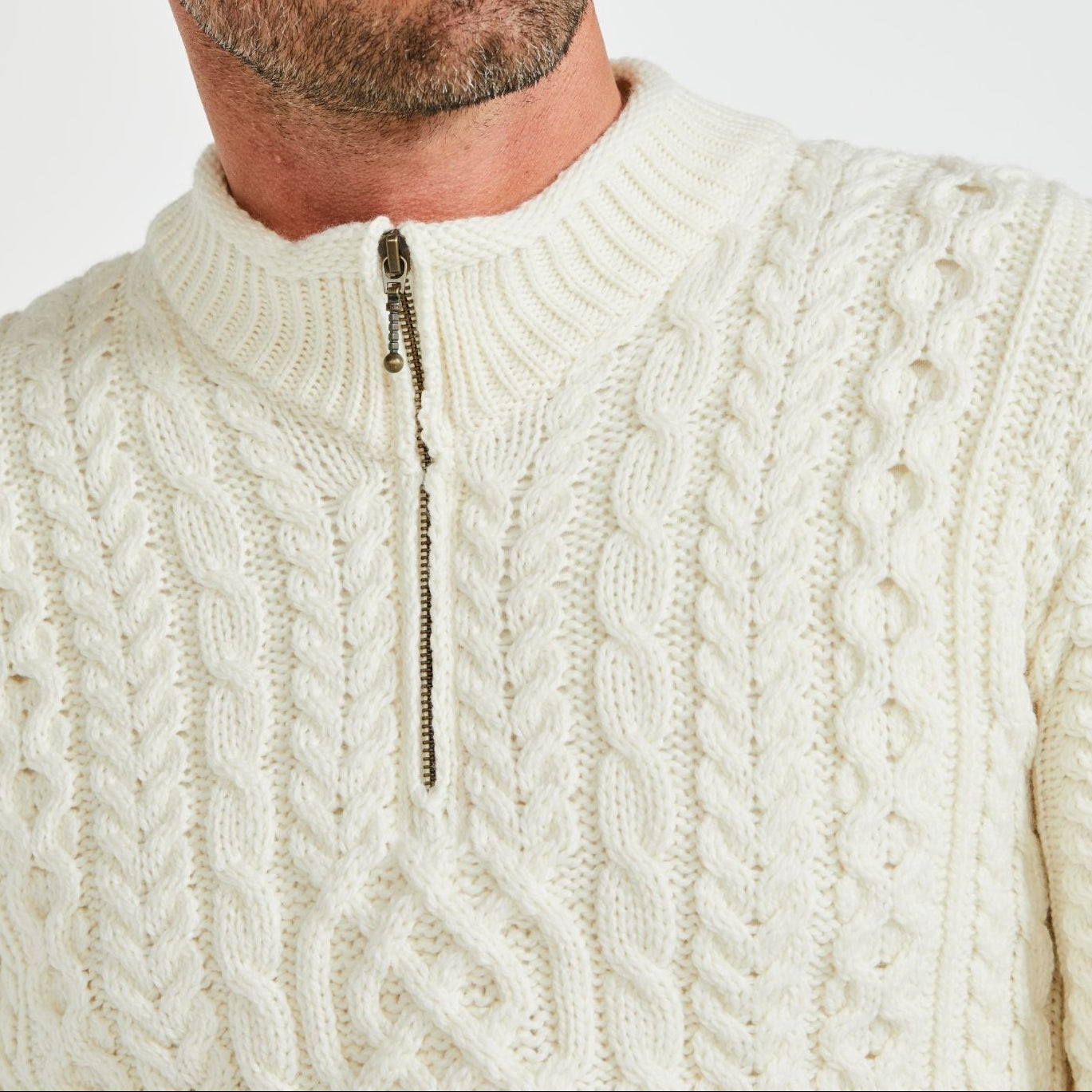 Lackaun Mens Natural Half Aran Troyer with Zip