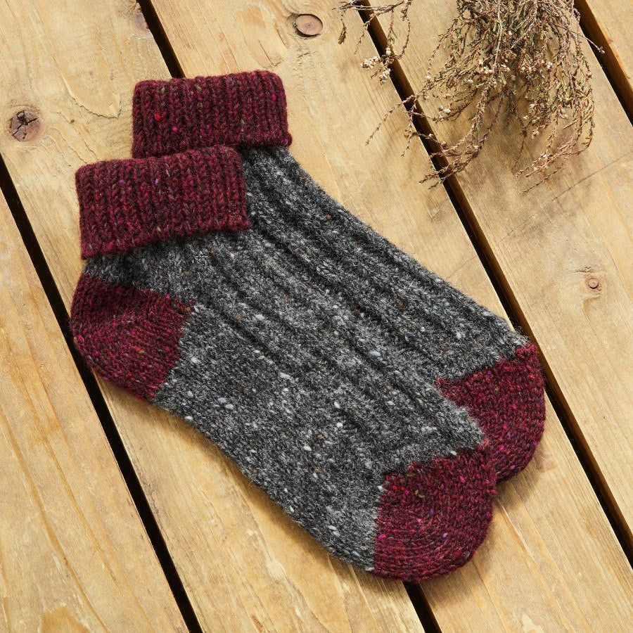 Ladies Donegal Yarn Berry/Charcoal Ankle Socks