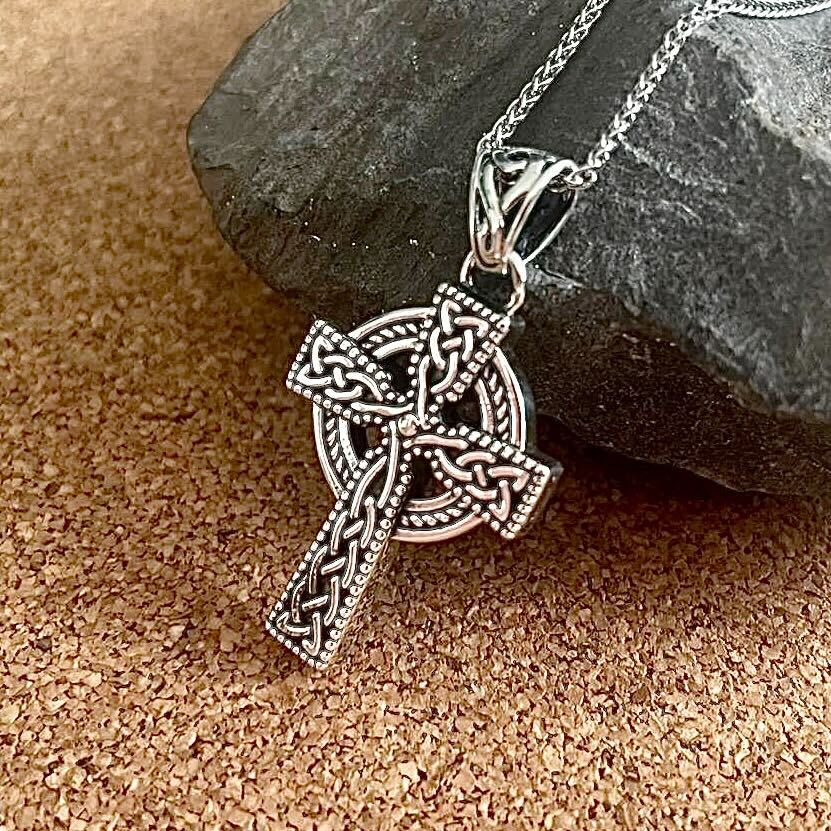 This Richly ornamented Celtic cross is a timeless emblem of faith and divine protection. The design gives it a look of old world charm. To enhance the antique look, the cross has an oxidized finish to it.