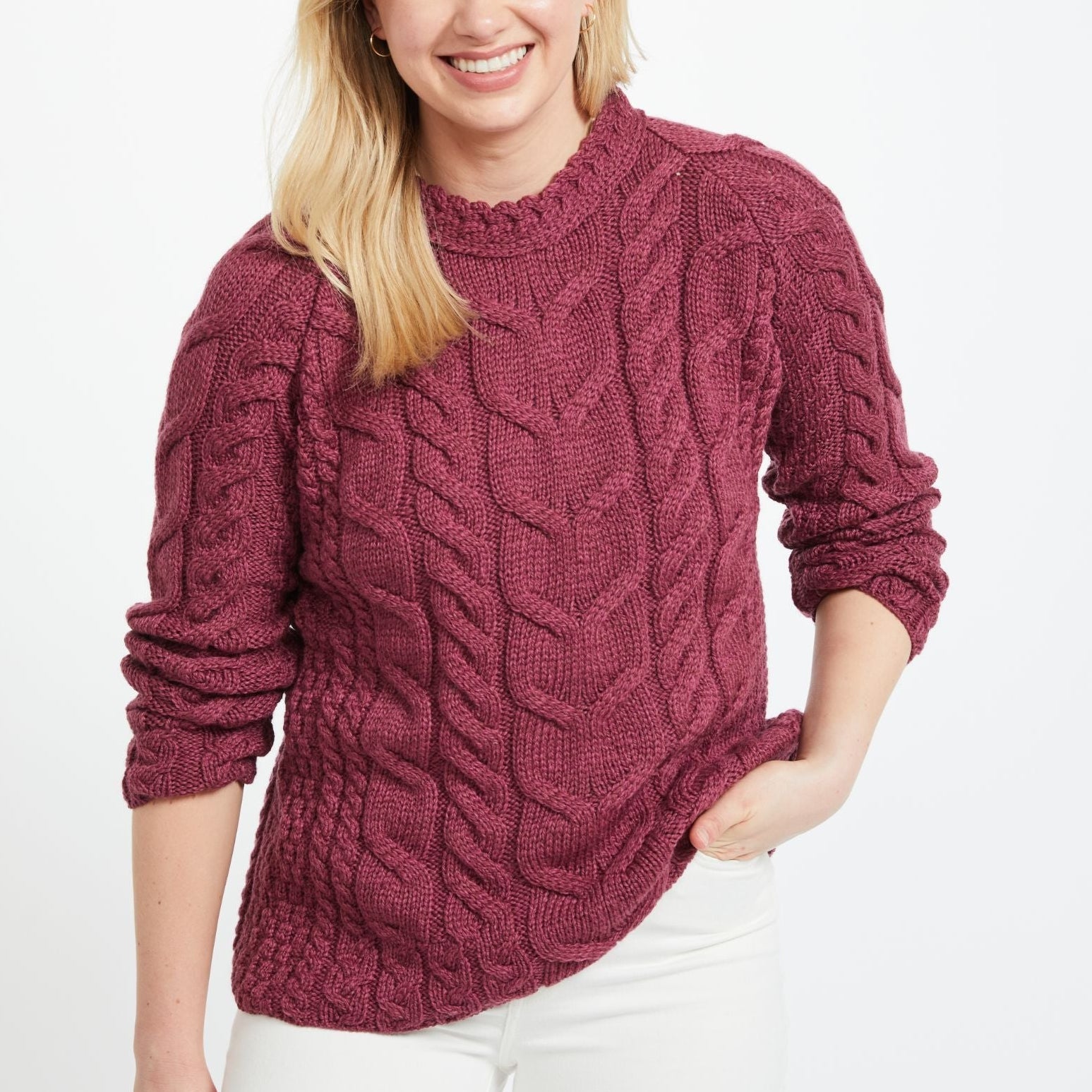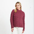 Listowel Ladies Aran Raspberry Cabled Sweater