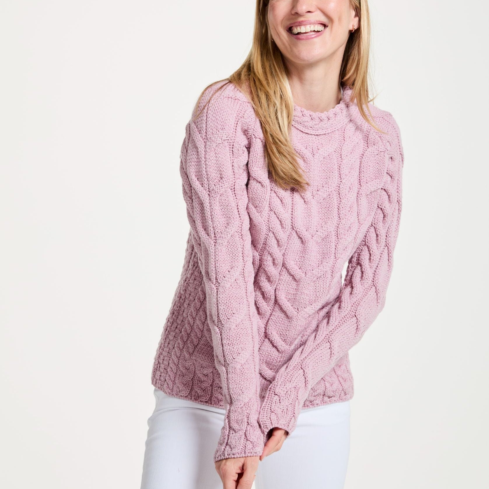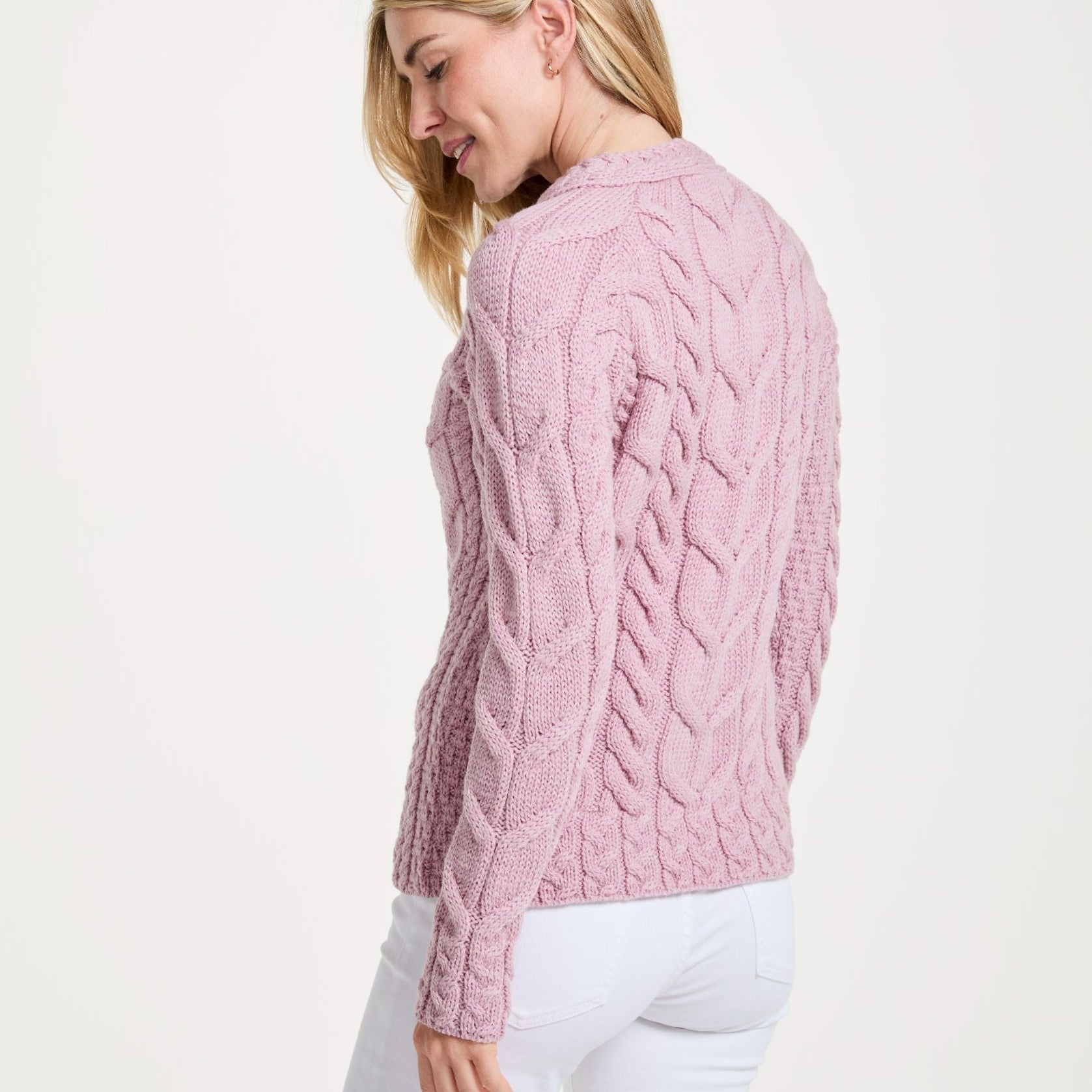 Listowel Ladies Aran Pink Cabled Sweater