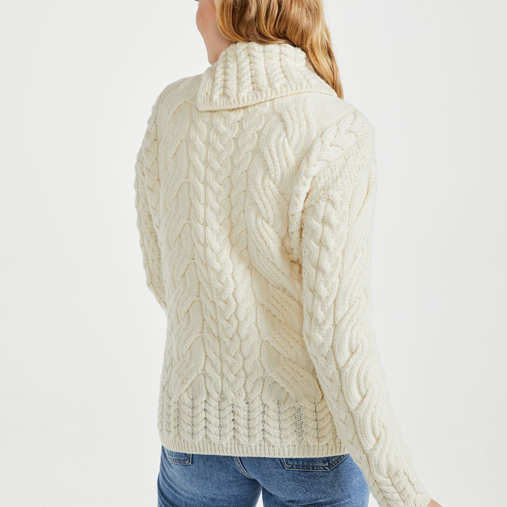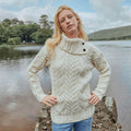 Maeve Aran Supersoft Natural Sweater with Button Collar