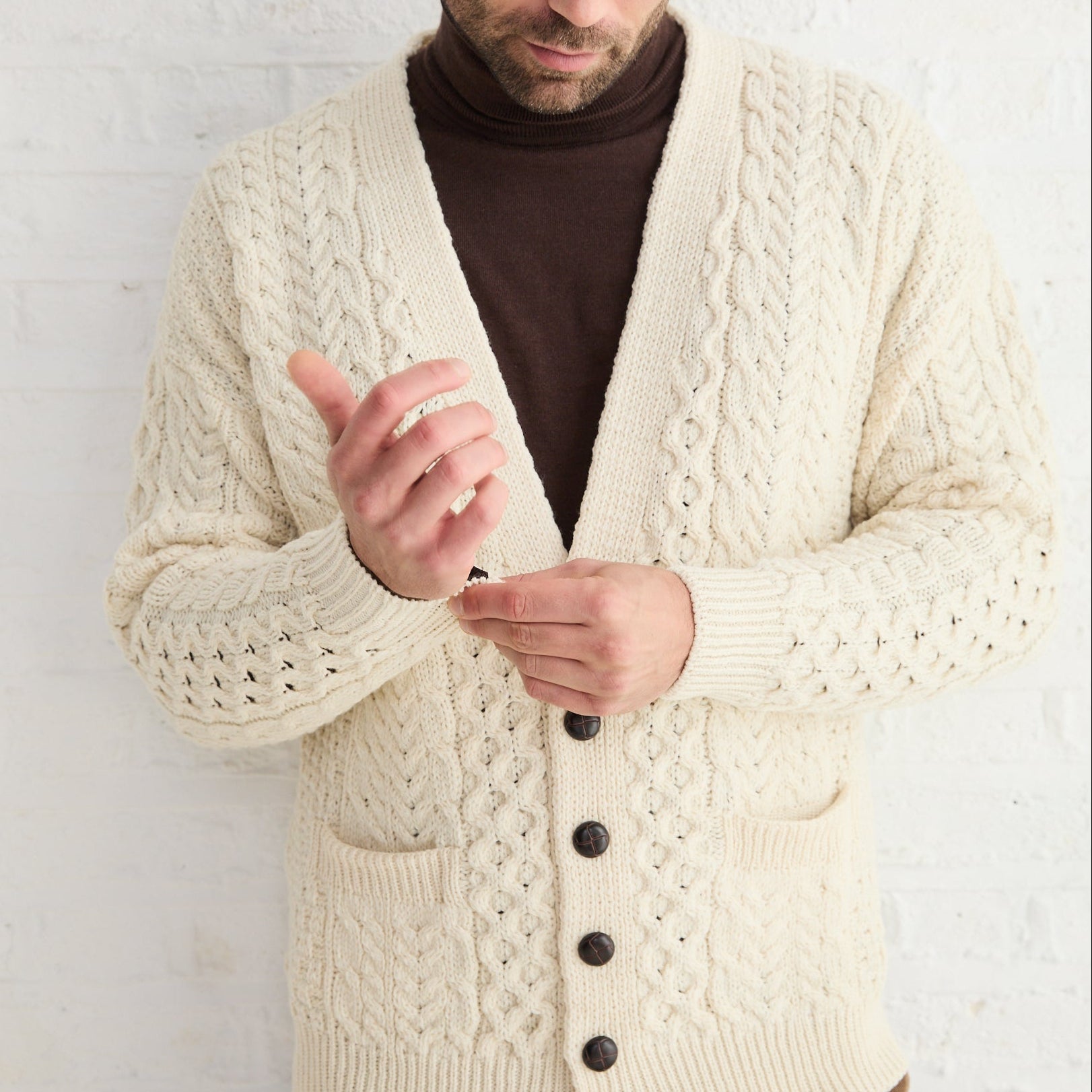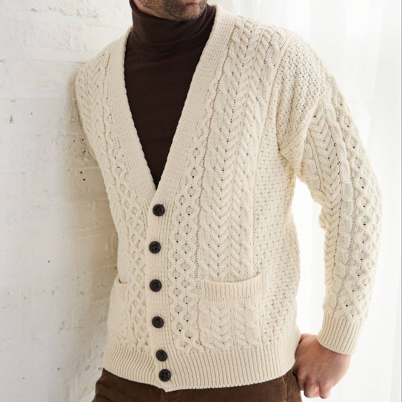 Experience the perfect blend of tradition and comfort with the Mens V Neck Cardigan. This timeless piece is a testament to Irish craftsmanship, meticulously knitted with a blend of 100% Merino wool. The intricate honeycomb stitches not only showcase the rich heritage of Irish knitting but also provide a unique texture and warmth that is second to none. The supersoft feel of the cardigan ensures a luxurious touch against your skin, making it an essential addition to your winter wardrobe.