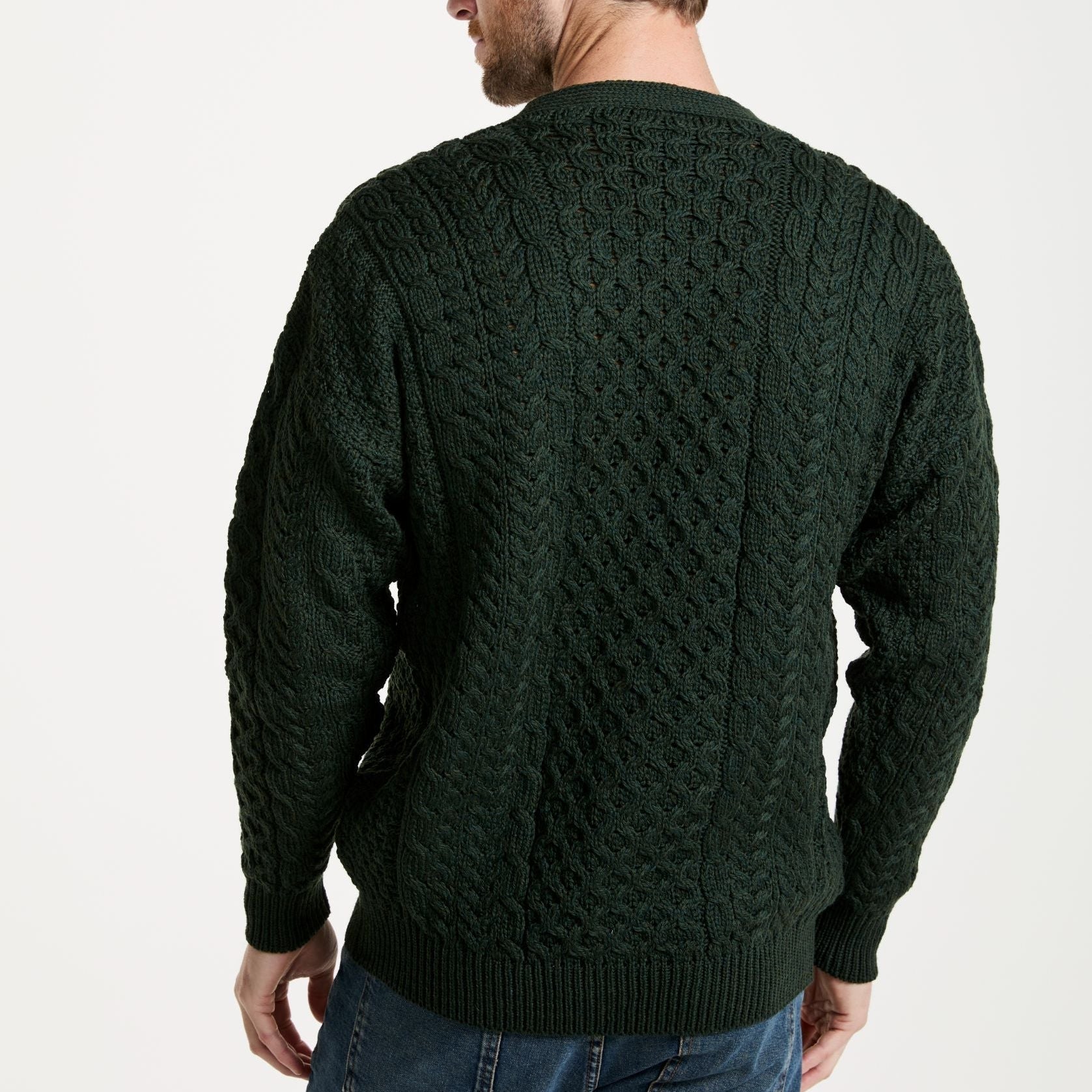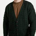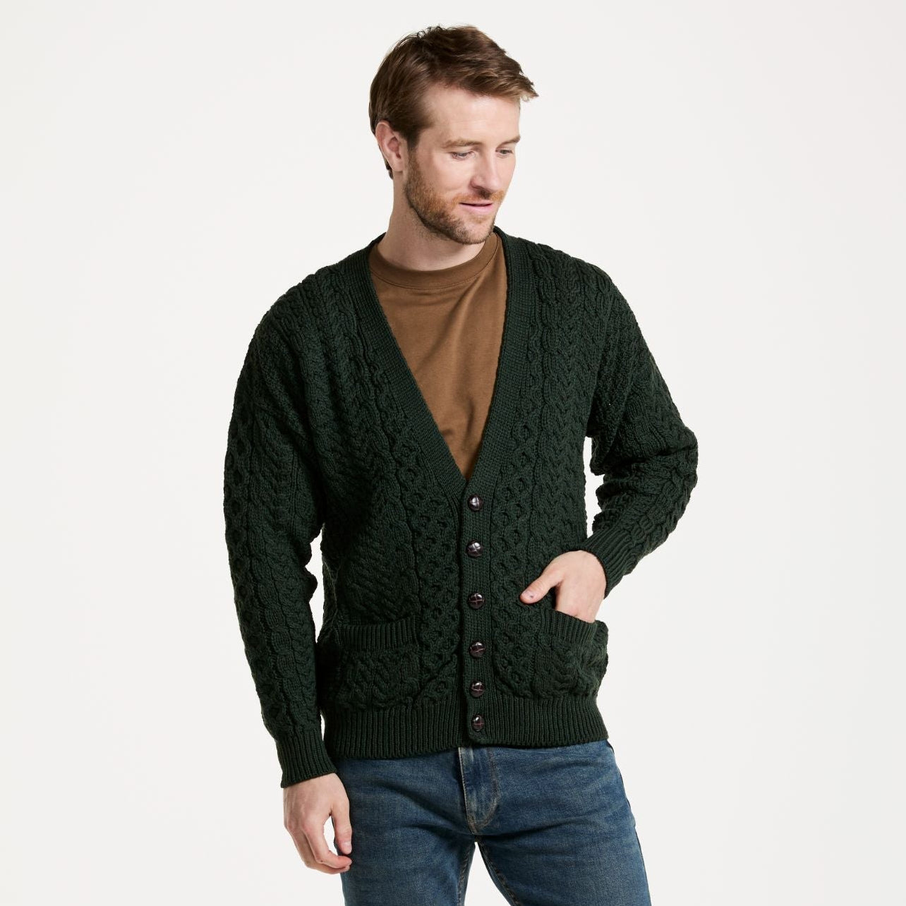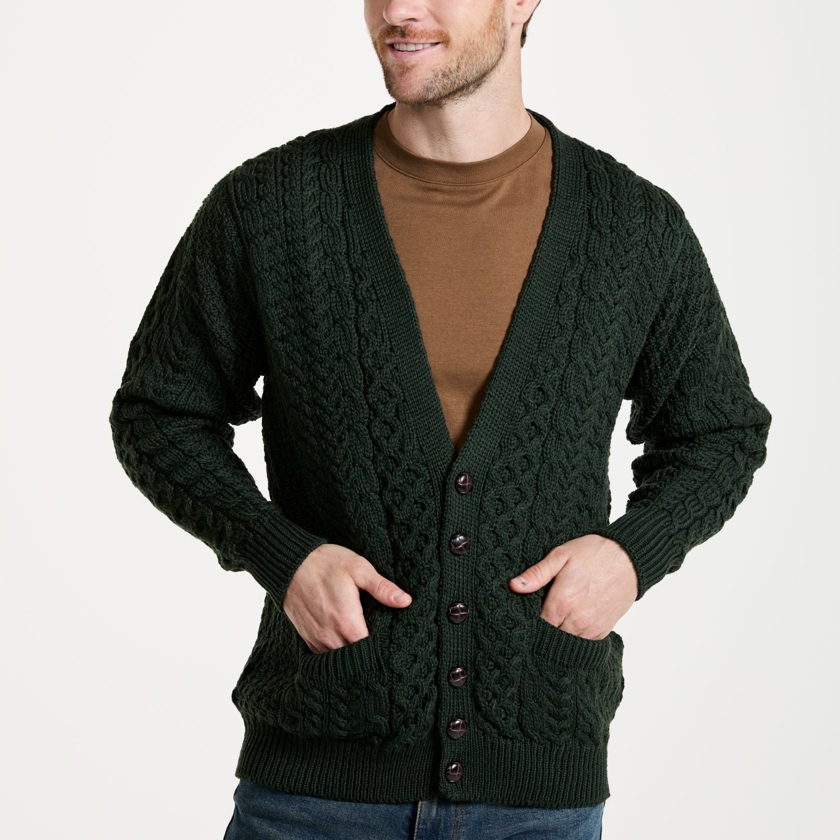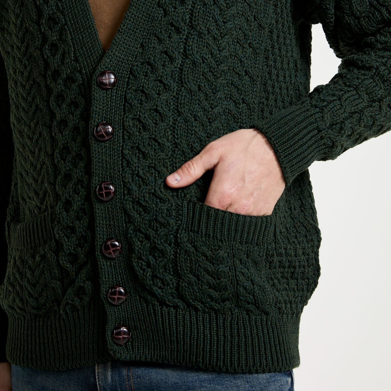 Experience the perfect blend of tradition and comfort with the Mens V Neck Cardigan. This timeless piece is a testament to Irish craftsmanship, meticulously knitted with a blend of 100% Merino wool. The intricate honeycomb stitches not only showcase the rich heritage of Irish knitting but also provide a unique texture and warmth that is second to none. The supersoft feel of the cardigan ensures a luxurious touch against your skin, making it an essential addition to your winter wardrobe.