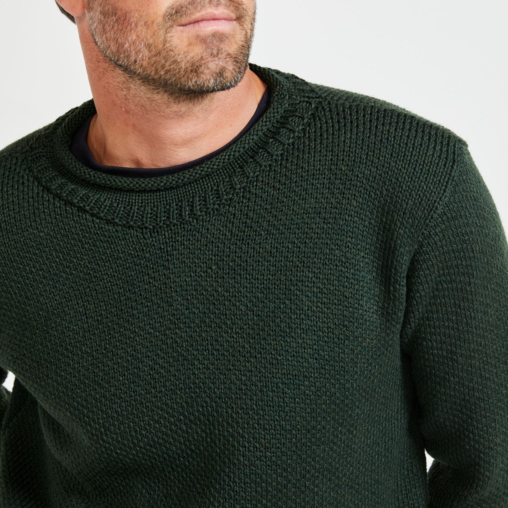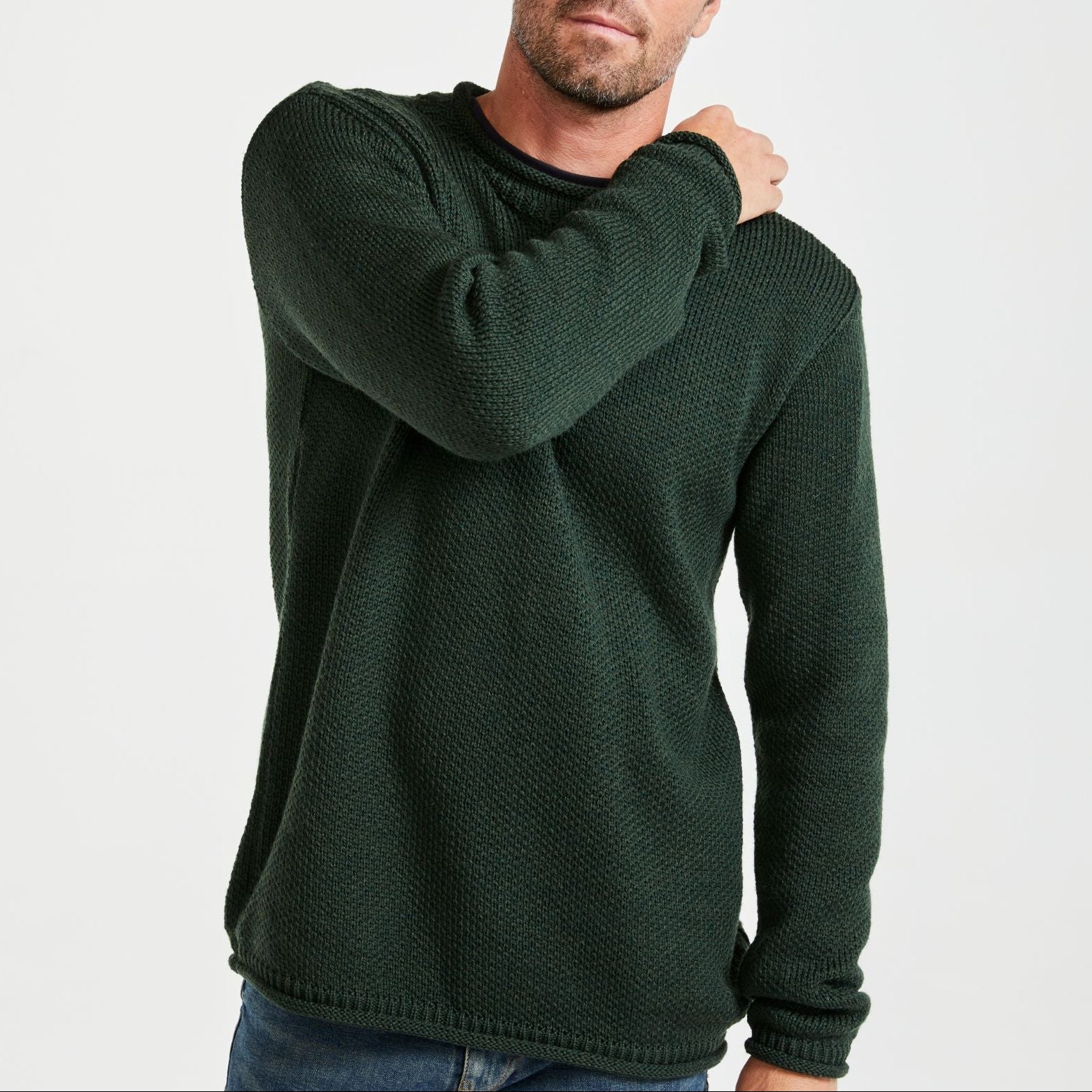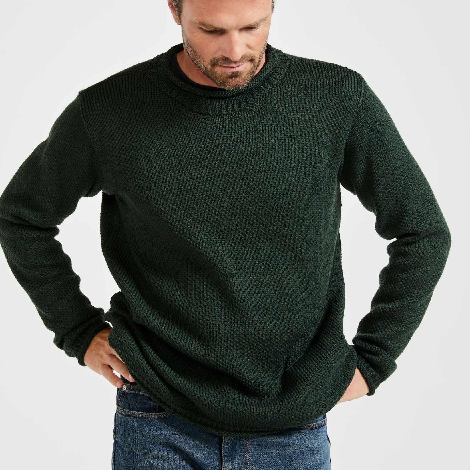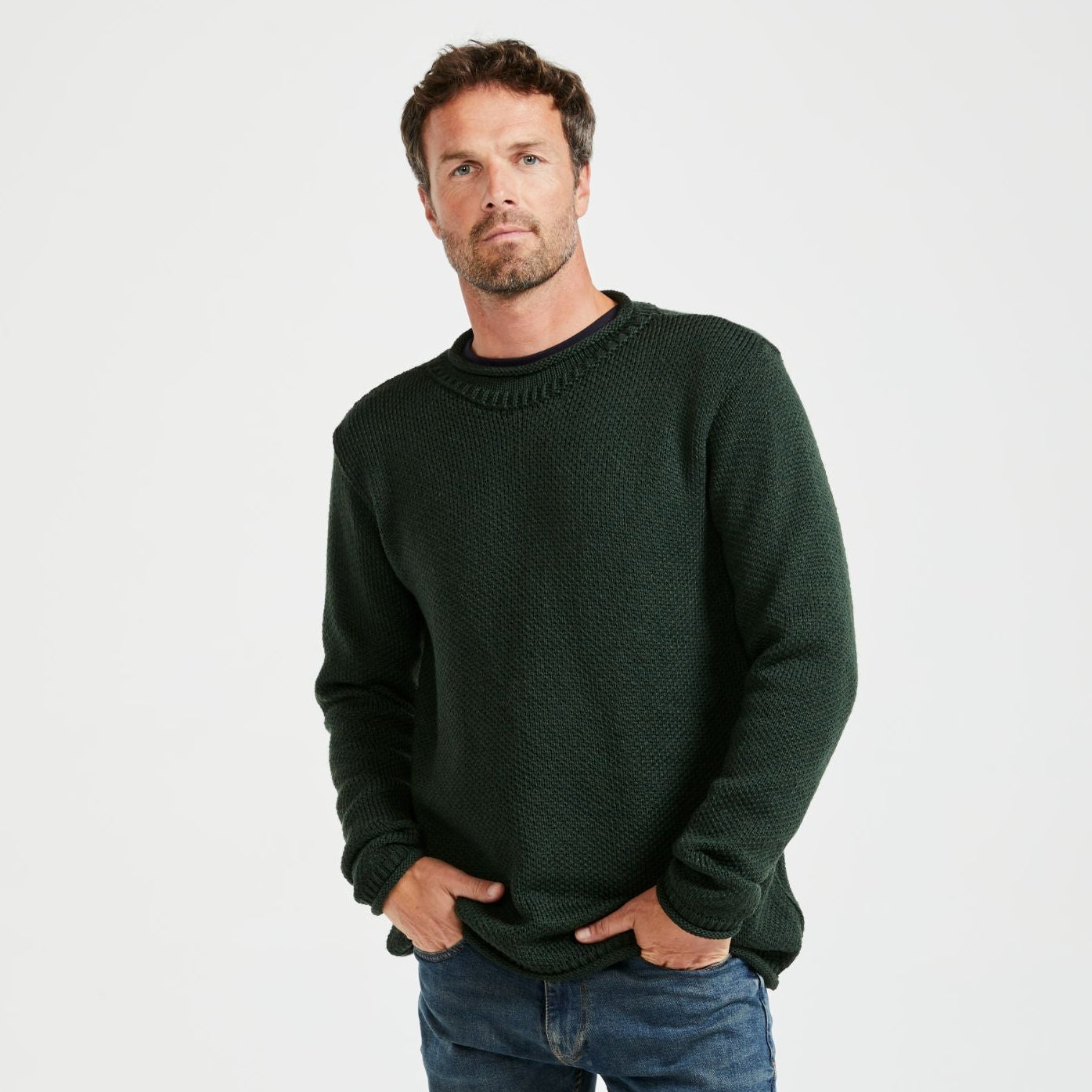 At times, simplicity makes the biggest statement. The Moycullen Roll Neck Sweater is designed for the man that values a simple, understated practicality. Crafted with our luxurious 100% merino wool, the Moycullen is a versatile, medium weight sweater suitable for a young man just starting out on his Aran adventure or a well travelled gentleman with a few more years of wisdom to play with. With a rolled crew neck, hem and cuffs, this piece is truly timeless.