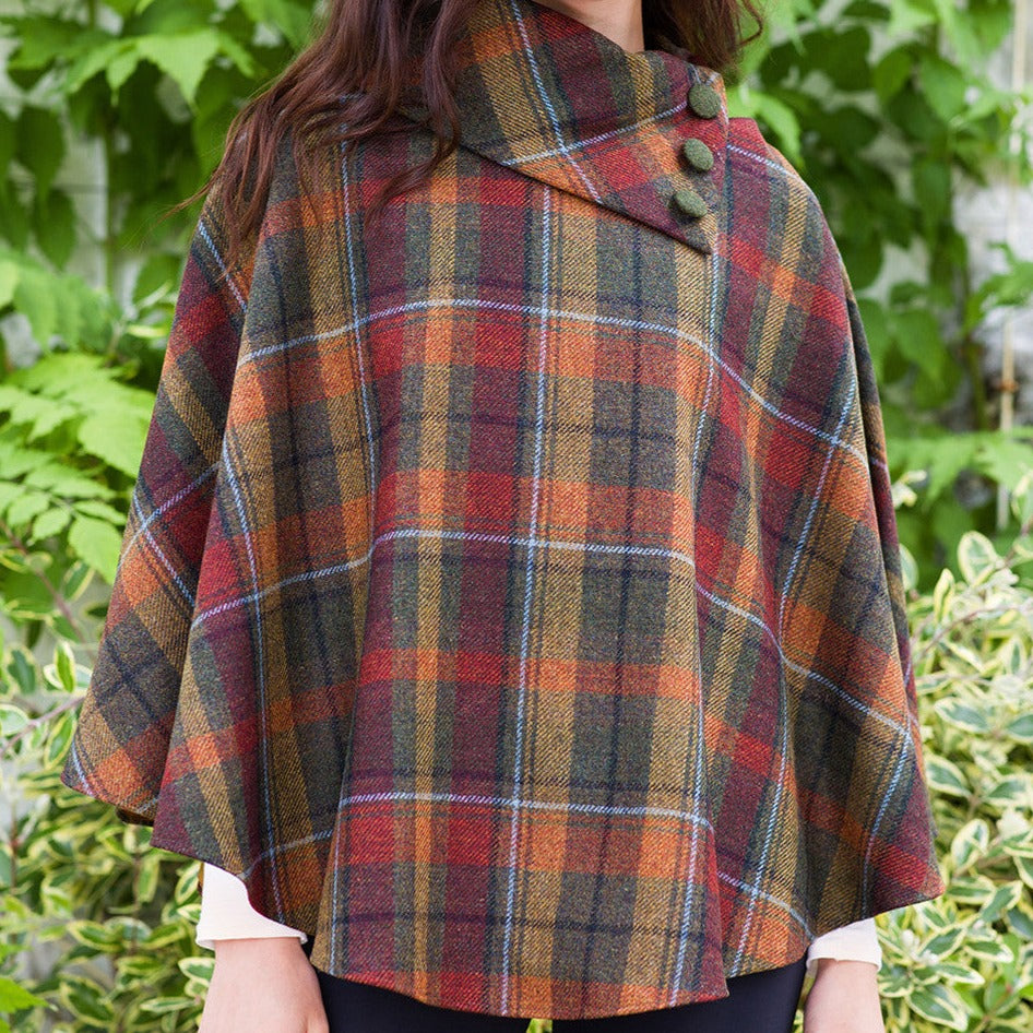 This classic style Poncho is beautifully crafted from 100% woven wool tweed in classic herringbone or a striking plaid, the cut is classic with a 3 button fastening. Lined with satin, this cape is the ultimate in luxury country chic.