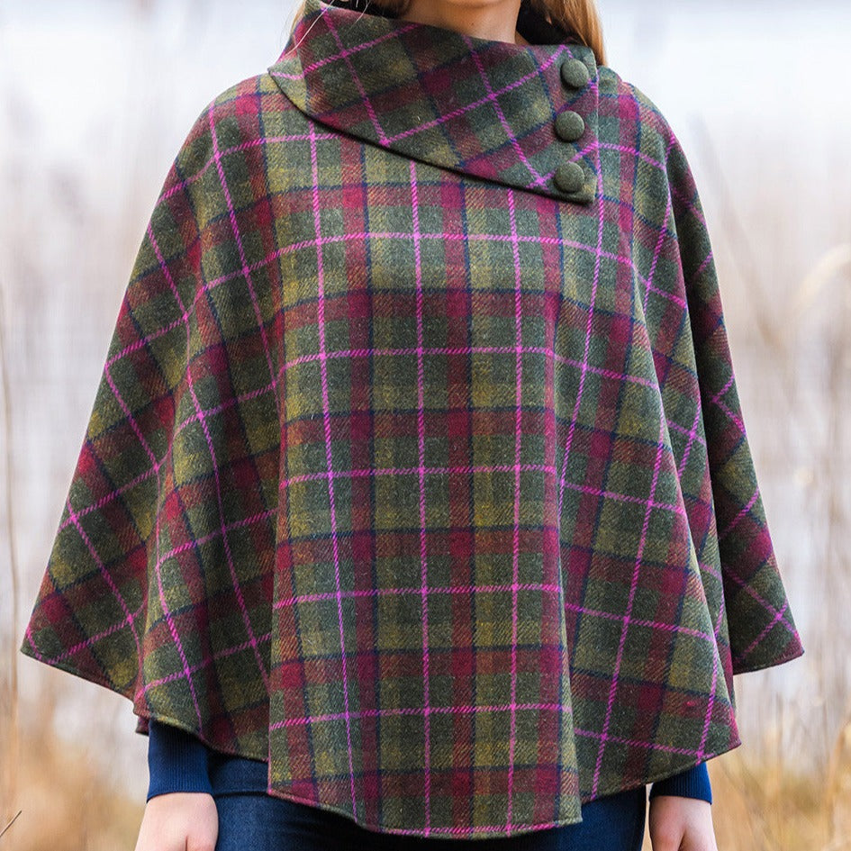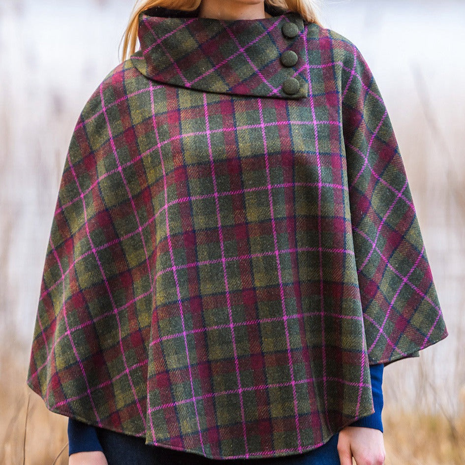 This classic style Poncho is beautifully crafted from 100% woven wool tweed in classic herringbone or a striking plaid, the cut is classic with a 3 button fastening. Lined with satin, this cape is the ultimate in luxury country chic.