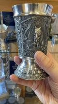 This Mullingar Pewter Beaker is created using the revived ancient art of pewter making. Featuring three embossed Irish woodland scenes, with a beautifully carved base. This would make a perfect Celtic gift for any lovers of Irish heritage and traditional craft making.