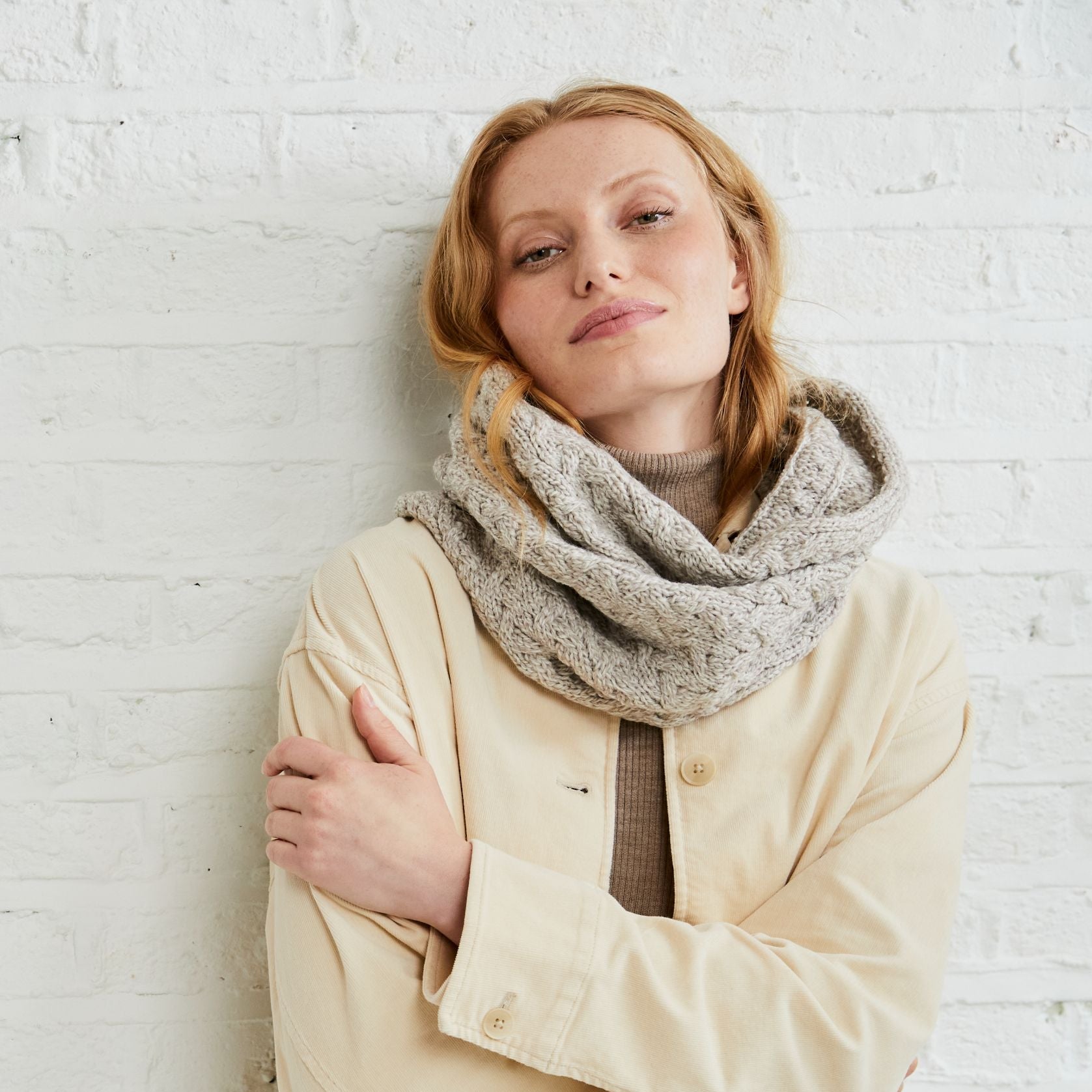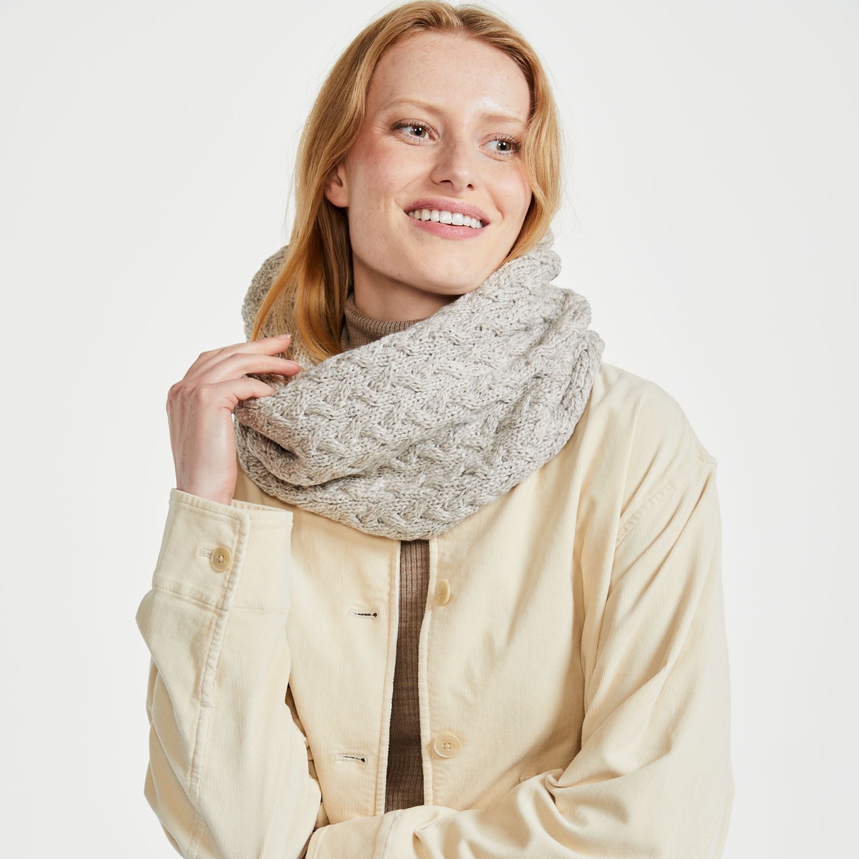 Whether you're braving the winter chill or simply looking to add a stylish touch to your ensemble, the Newport Aran Cable Snood is an essential accessory. Embrace the warmth and elegance of authentic Irish craftsmanship with this beautifully designed snood.