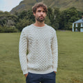 Embrace timeless elegance and superior comfort with the Omey Men's Aran Crew Neck Sweater from Aran Woollen Mills. This exquisite piece is meticulously crafted in Ireland, drawing inspiration from the rich heritage of traditional Aran knitting. The Omey sweater showcases intricate cable and diamond patterns, symbolizing the islands' storied past and the craftsmanship passed down through generations.