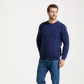 Omey Mens Aran Crew Neck Navy Sweater