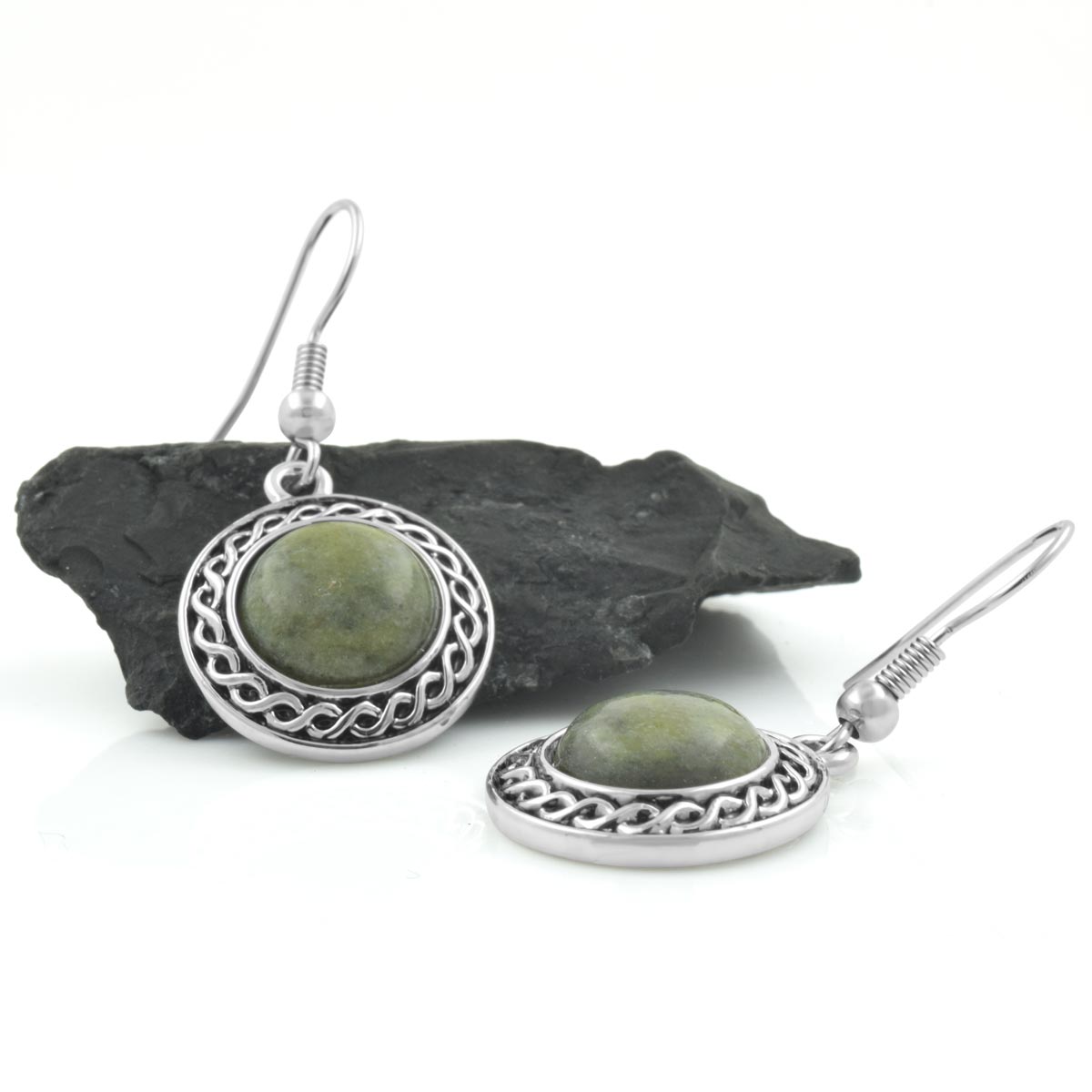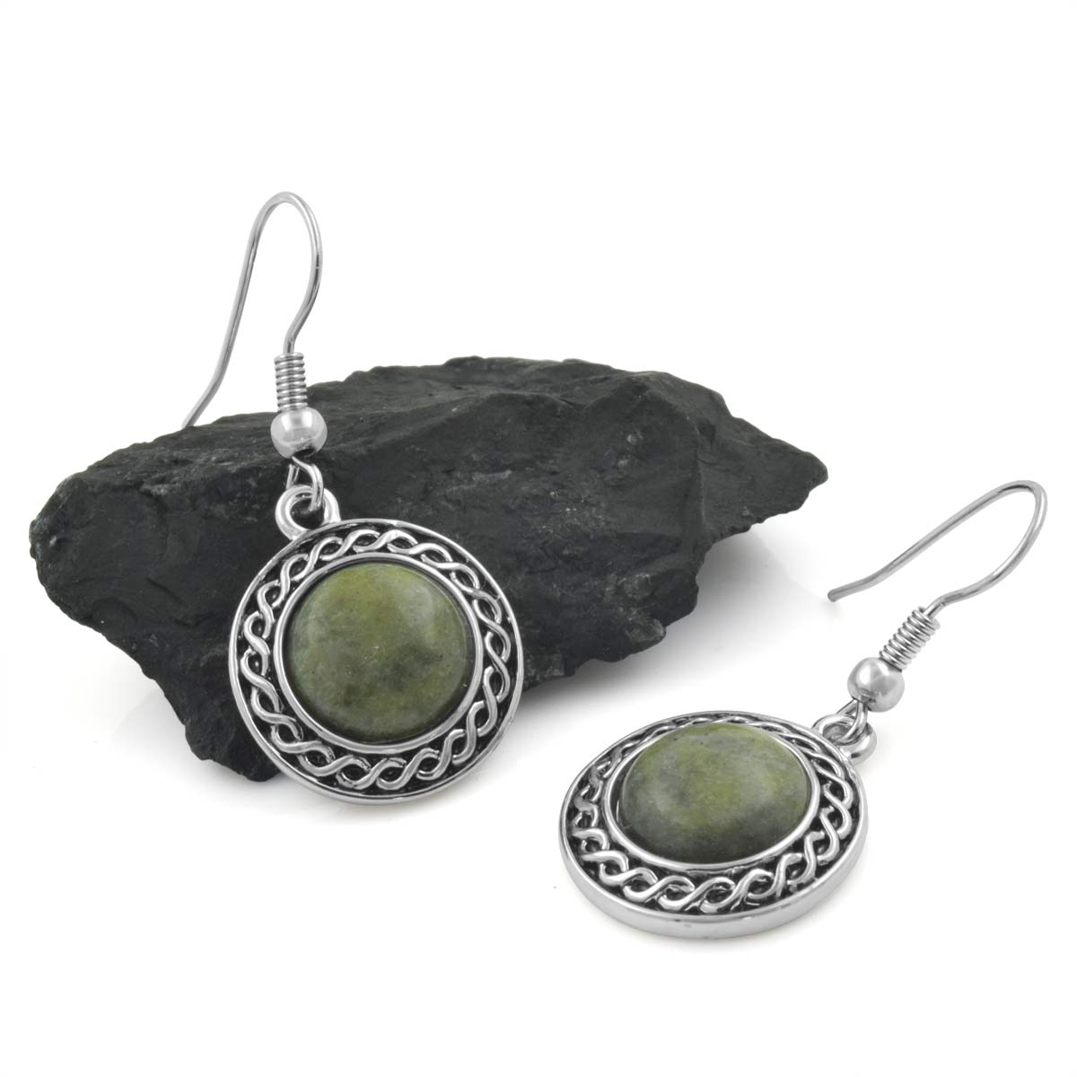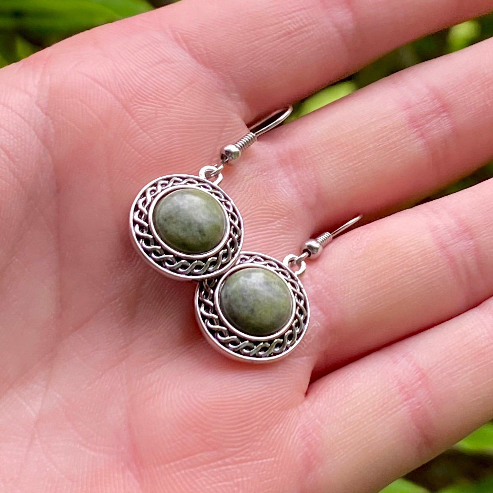 This charming pair of Celtic earrings will add style to any outfit. Crafted from Connemara Marble, these Celtic earrings are as unique as the woman who wears them. Each pair is lovingly crafted by hand, from start to finish. This item is not just a piece of jewelry, but a piece of history. Connemara Marble is a beautiful stone, dating back millions of years. It's found only in the West.