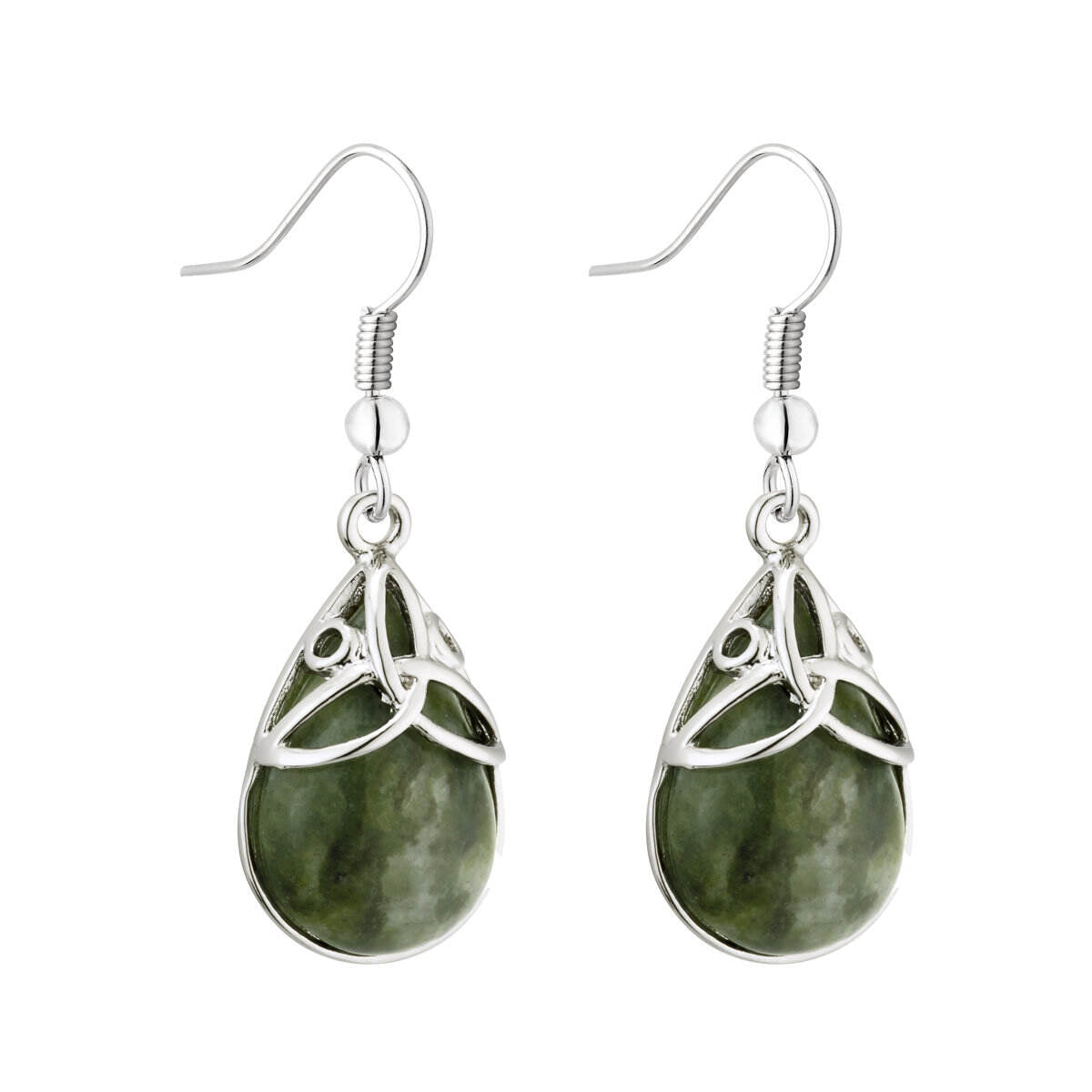 Rhodium Connemara Marble Trinity Knot Drop Earrings