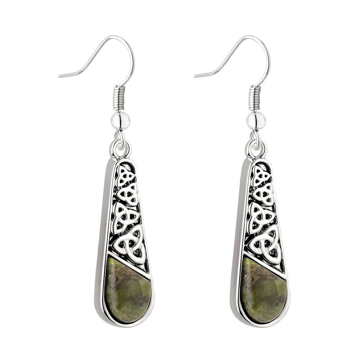 Rhodium Connemara Marble Trinity Knots Drop Earrings