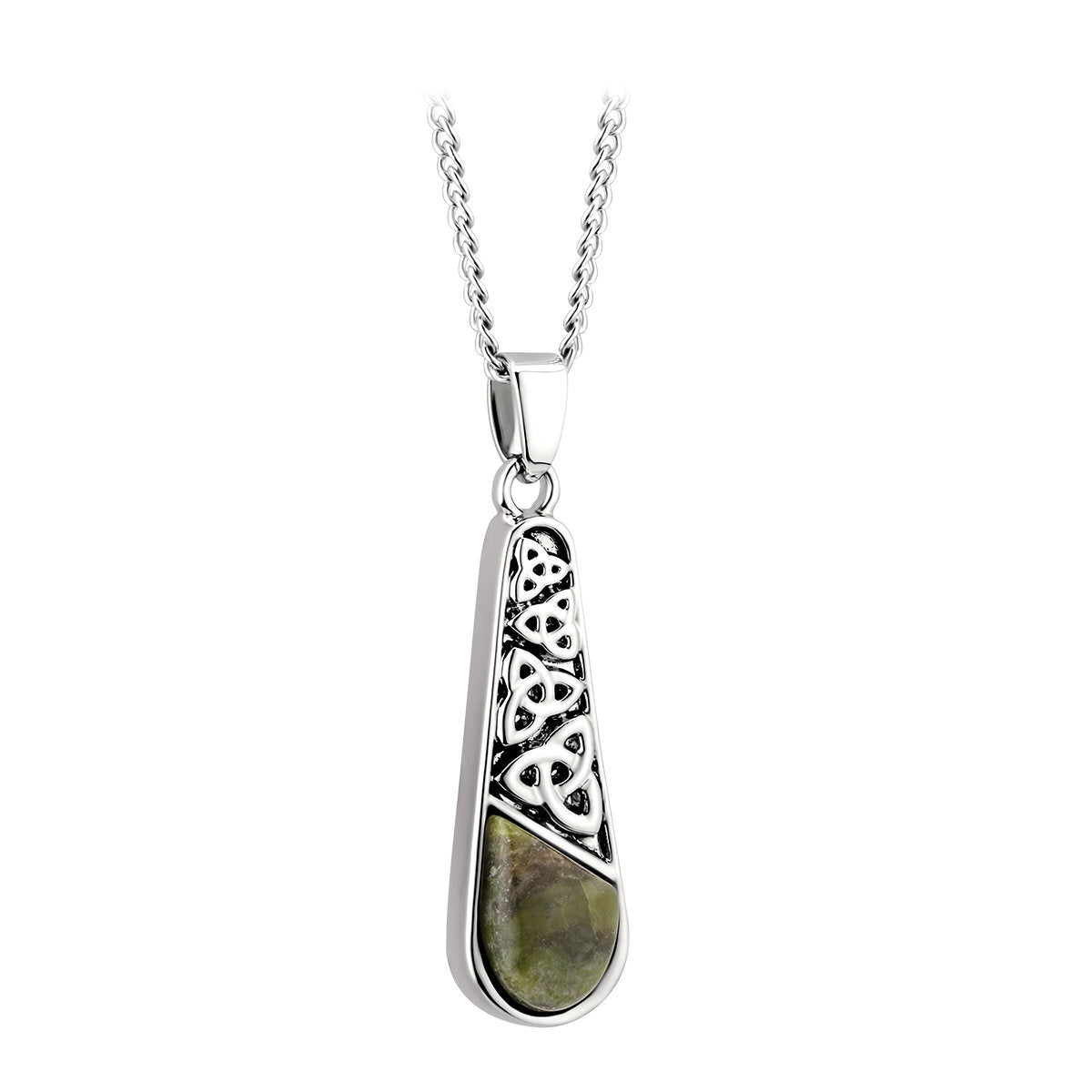 Rhodium Connemara Marble Trinity Knots Long Pendant