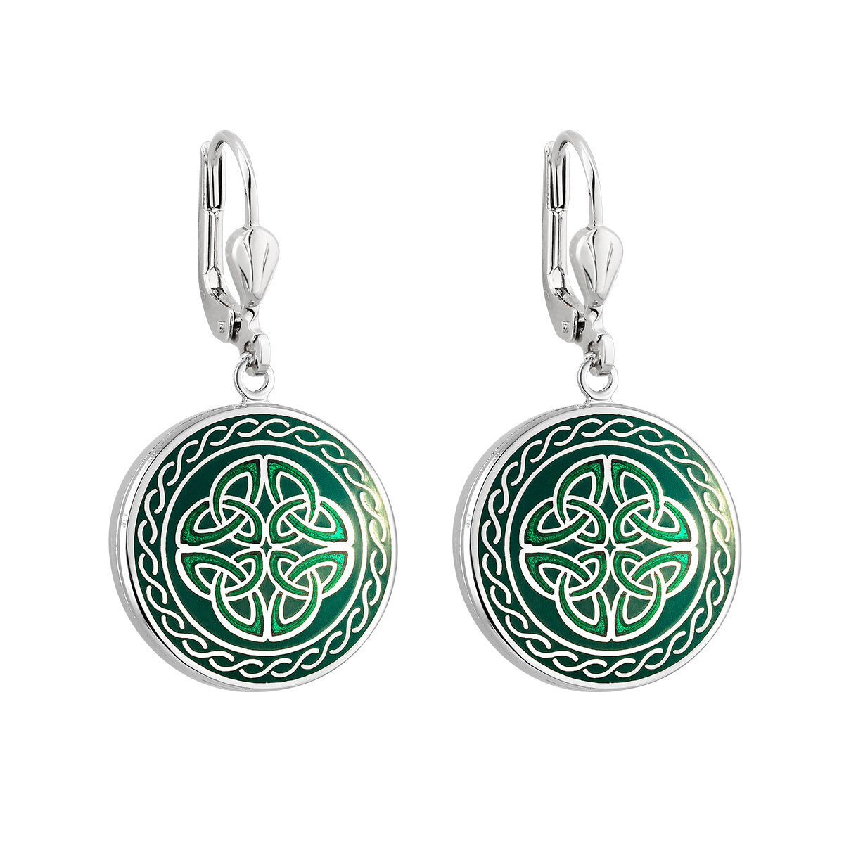 Illuminate your ears with the allure of our Rhodium Green Enamel Four Trinity Knots Earrings, a perfect blend of Celtic tradition and contemporary sophistication.