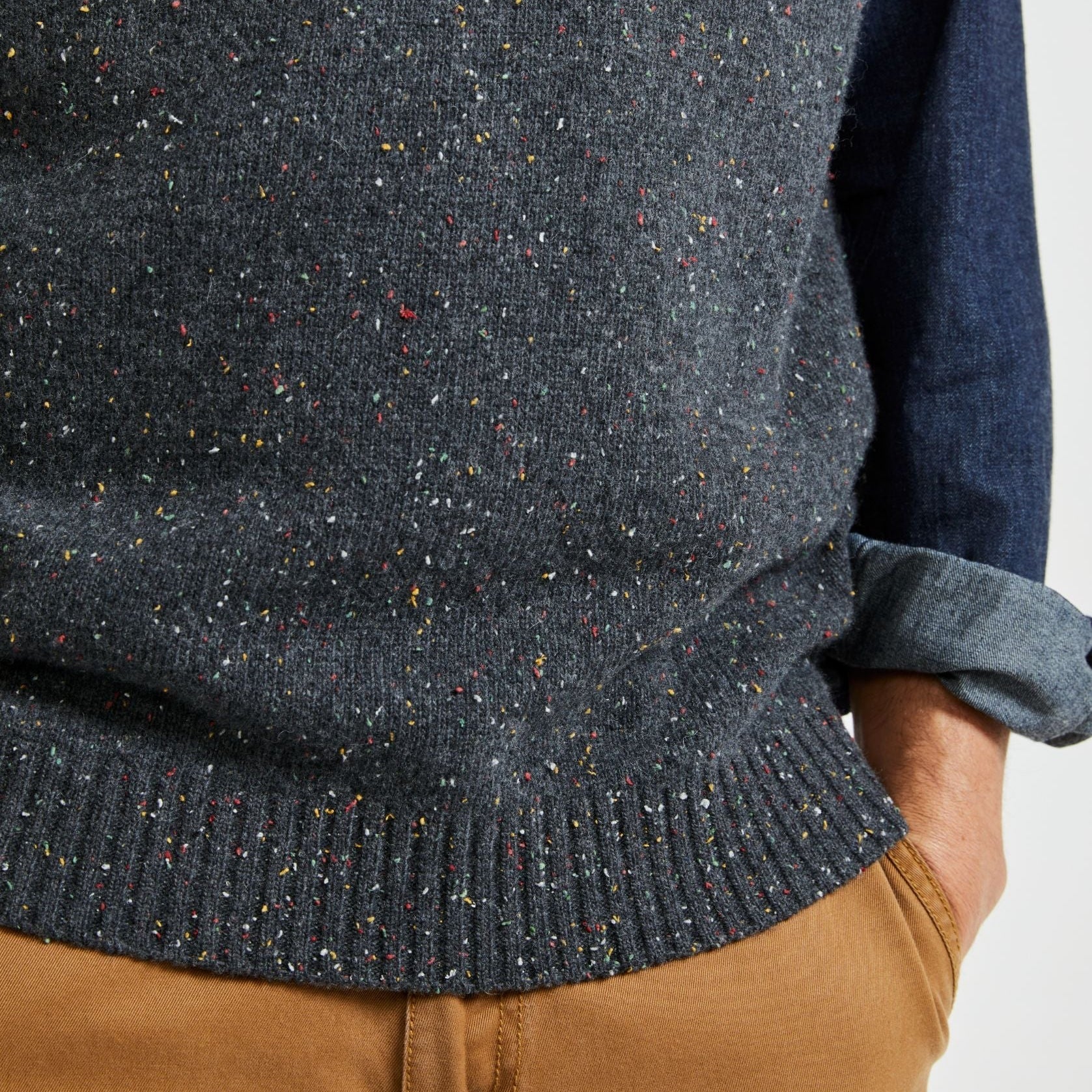 Roonagh Men's Aran Nepped Grey V-Neck Vest