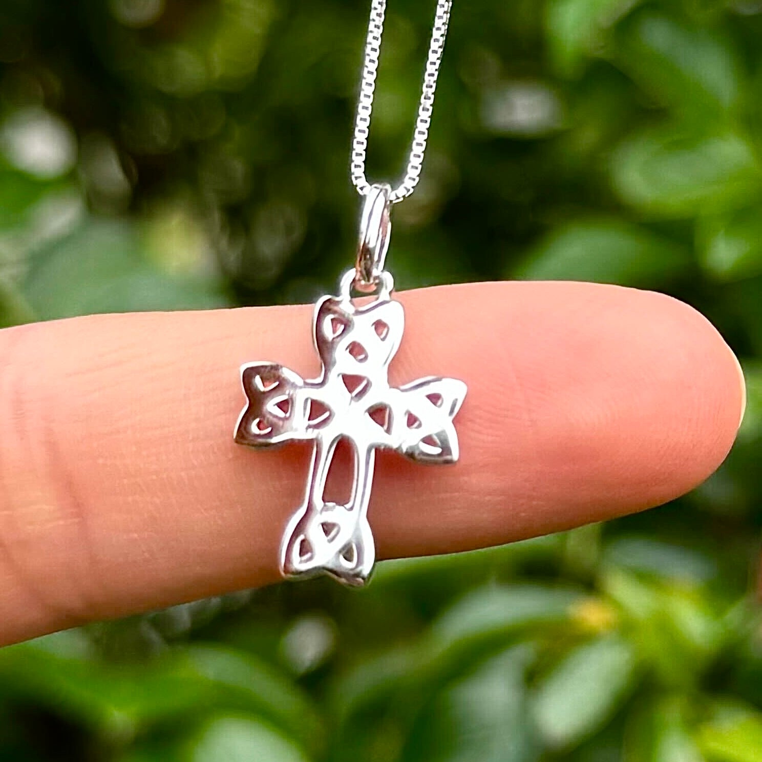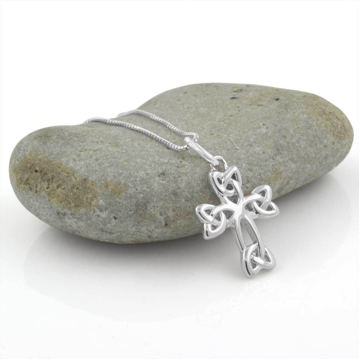 Our Sterling Silver Trinity Knot Cross Pendant is a radiant fusion of Celtic symbolism and timeless elegance. Handcrafted with meticulous precision, this Trinity Knot pendant transcends jewelry; it's a profound tribute to Irish heritage, symbolizing unity and faith.