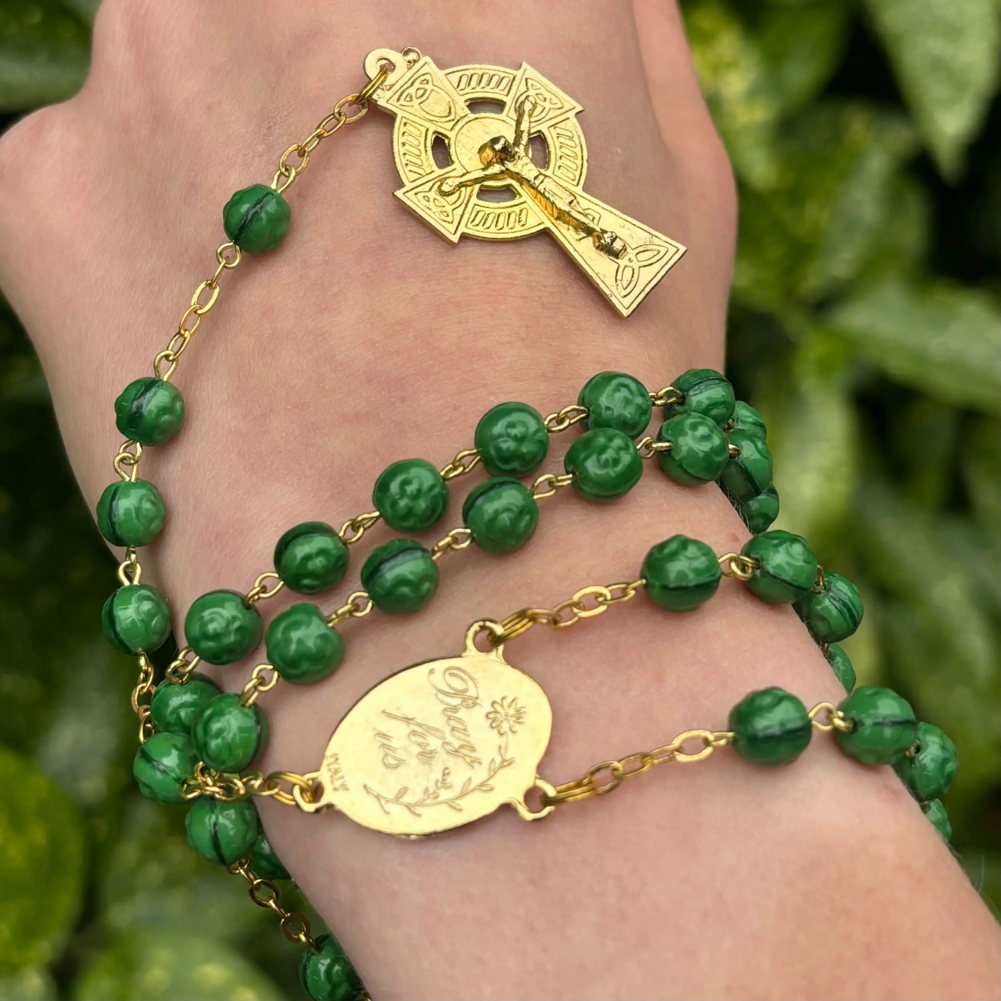 - Rich symbolism: Features gilt Shamrock beads and genuine Connemara marble beads, representing Irish heritage, with each green glass bead embossed with a shamrock design.