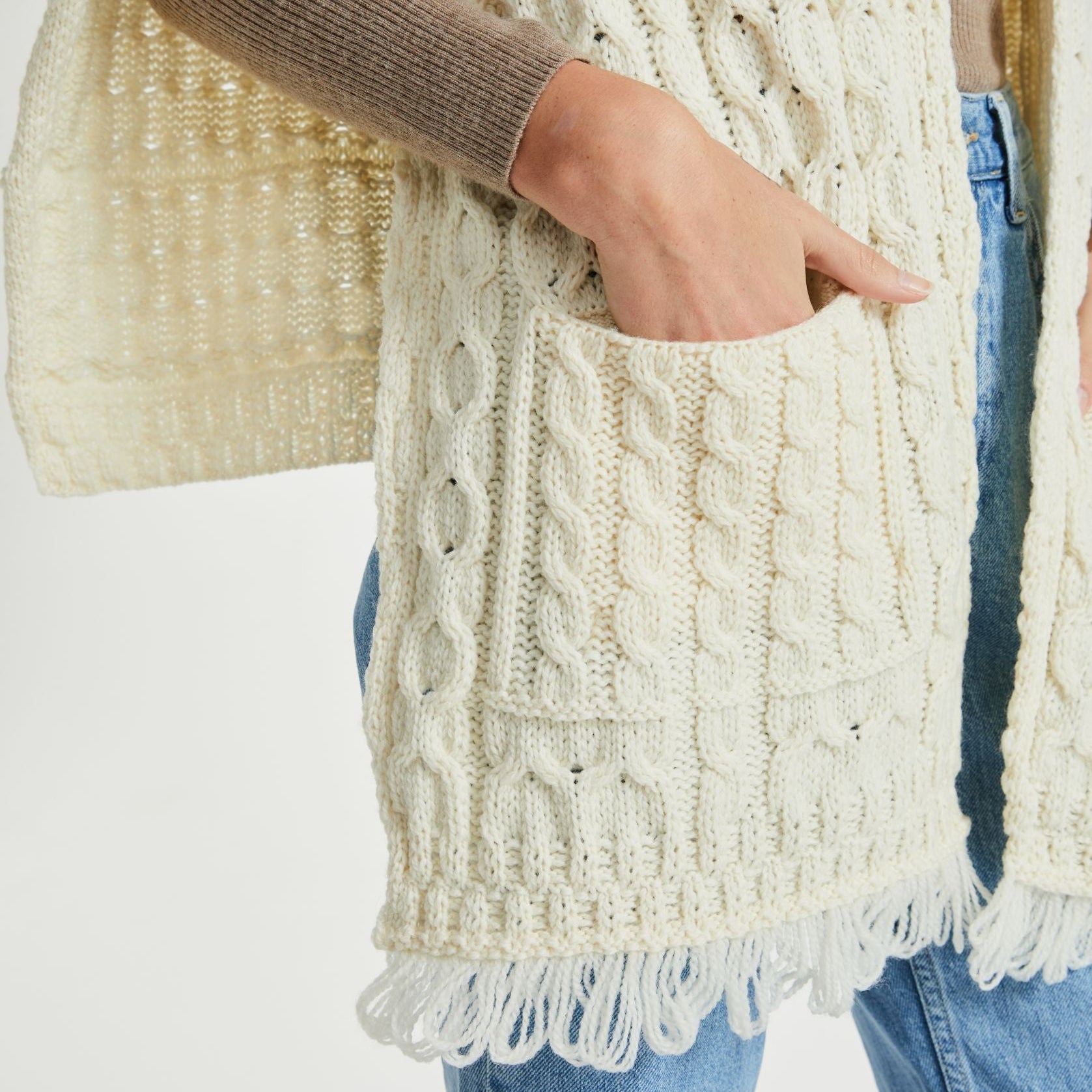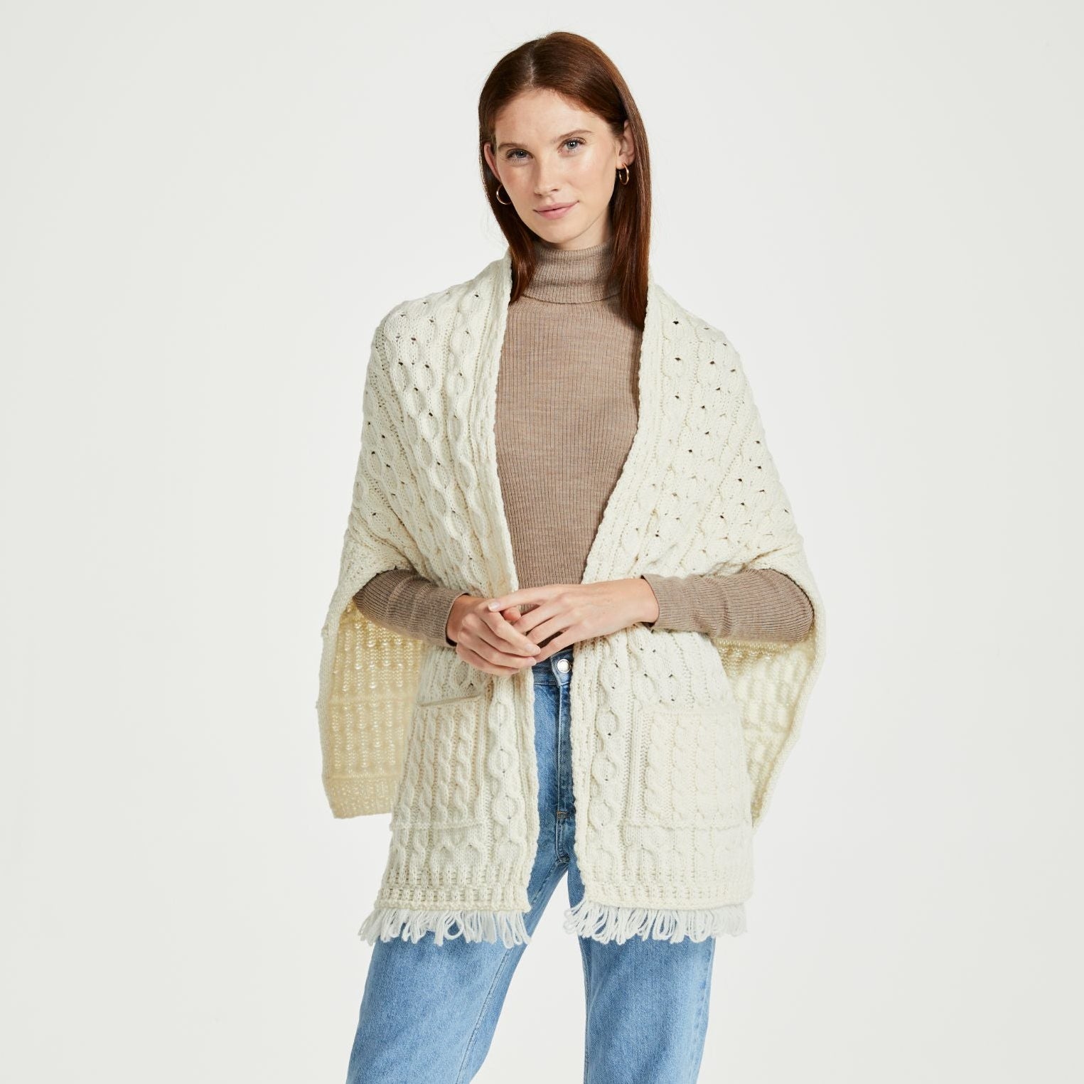 Elevate your comfort and style with the Shannon Throwover Aran Wrap with Pocket – the perfect blend of tradition, luxury, and practicality.