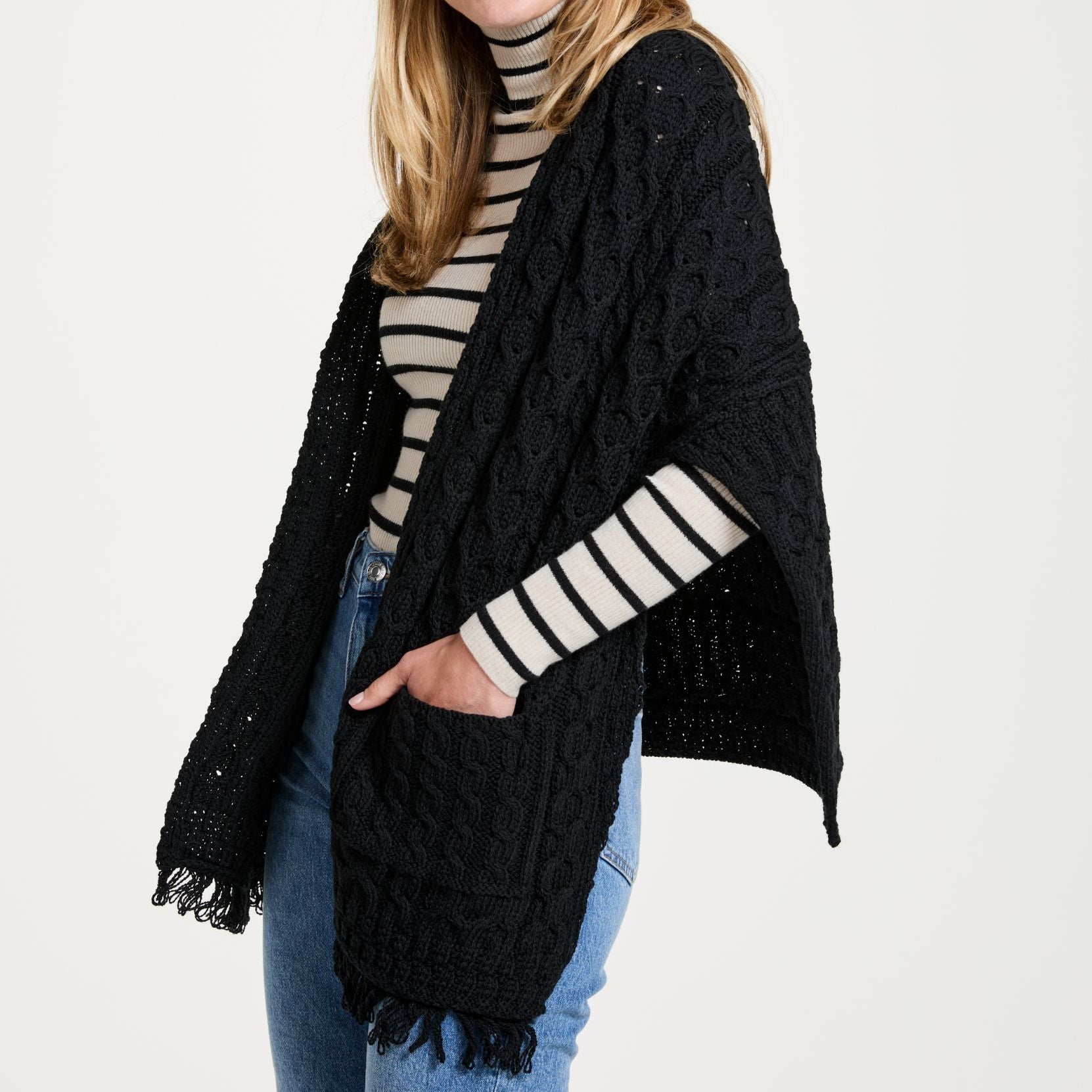 Elevate your comfort and style with the Shannon Throwover Aran Wrap with Pocket – the perfect blend of tradition, luxury, and practicality.