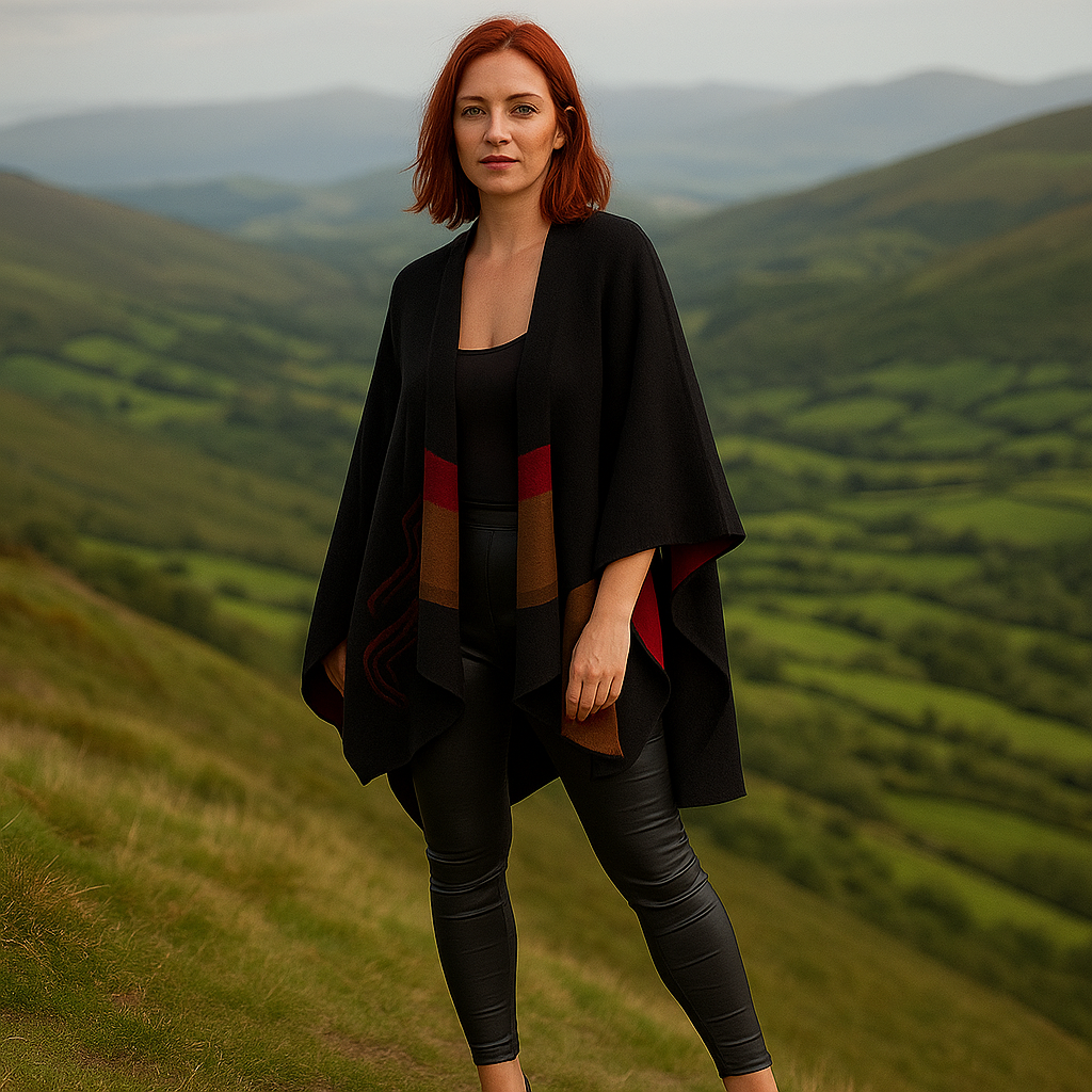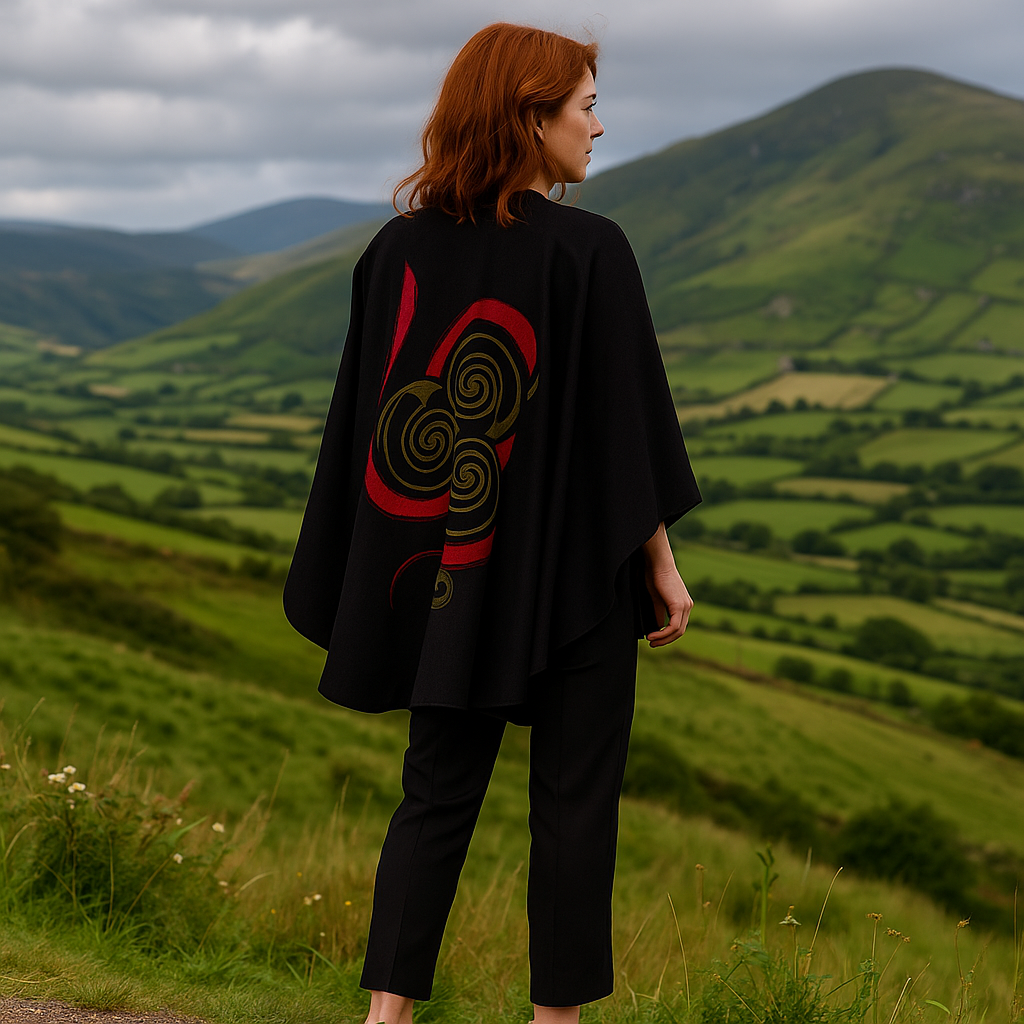 Jimmy Hourihan Shawl in Black/Red with Celtic Motif