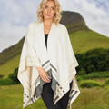 New to our shawl collection is this Colour Block Design Shawl. Ruana/Shawl/Wrap with Colour Blocking Design in 100% Acrylic. The colour blocking effect is achieved by weaving on special Jacquard looms. Made by renowned designer Jimmy Hourihan, it is a versatile and luxuriously comfortable with its reversible wearing option.