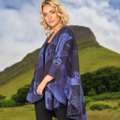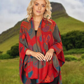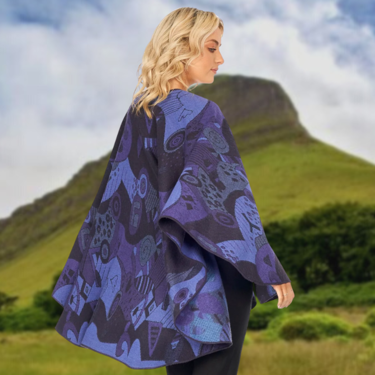 Reversible ruana/shawl/wrap with a unique 'Picasso' inspired motif. An elegant piece of ladies' Irish clothing for yourself, or makes a beautiful gift from Ireland.