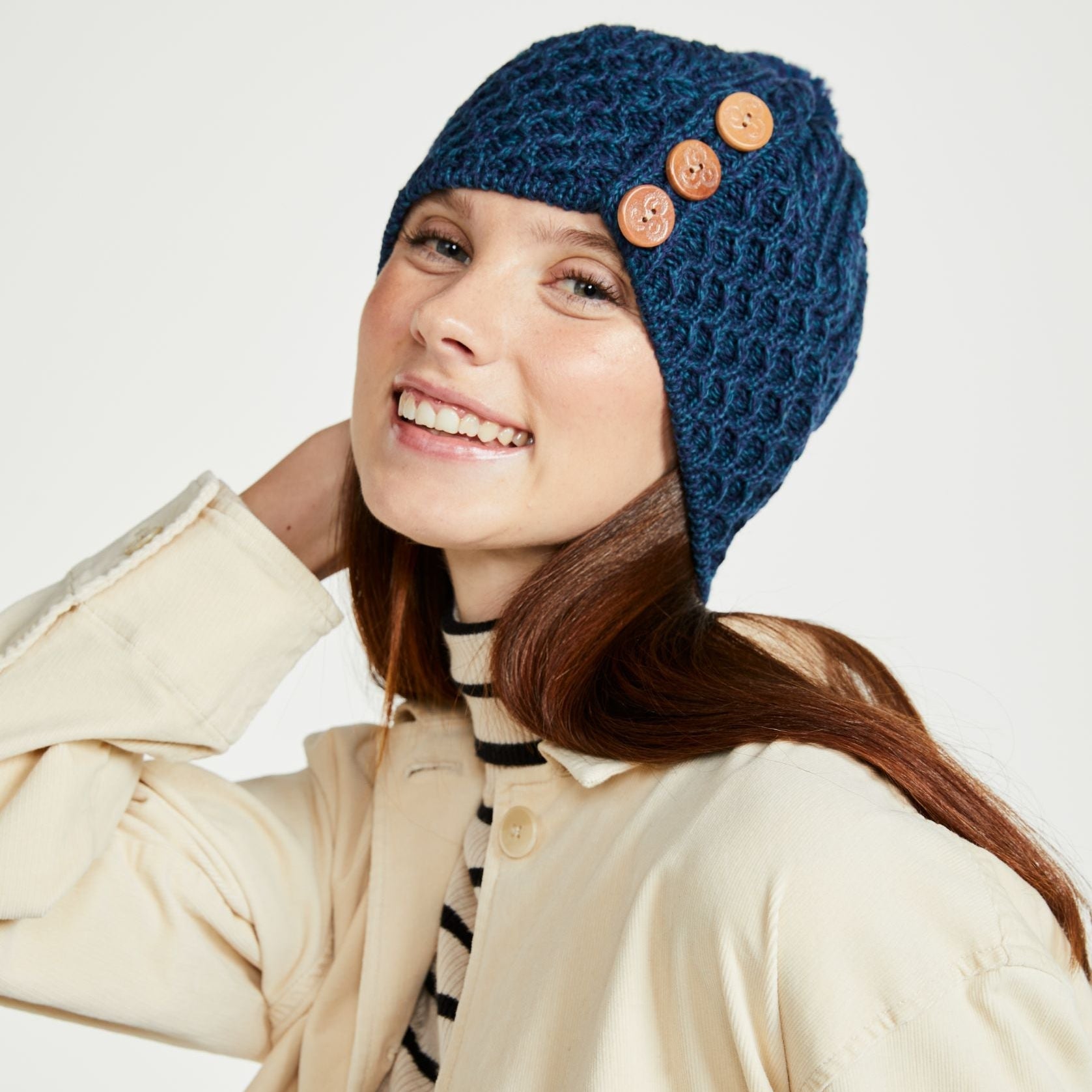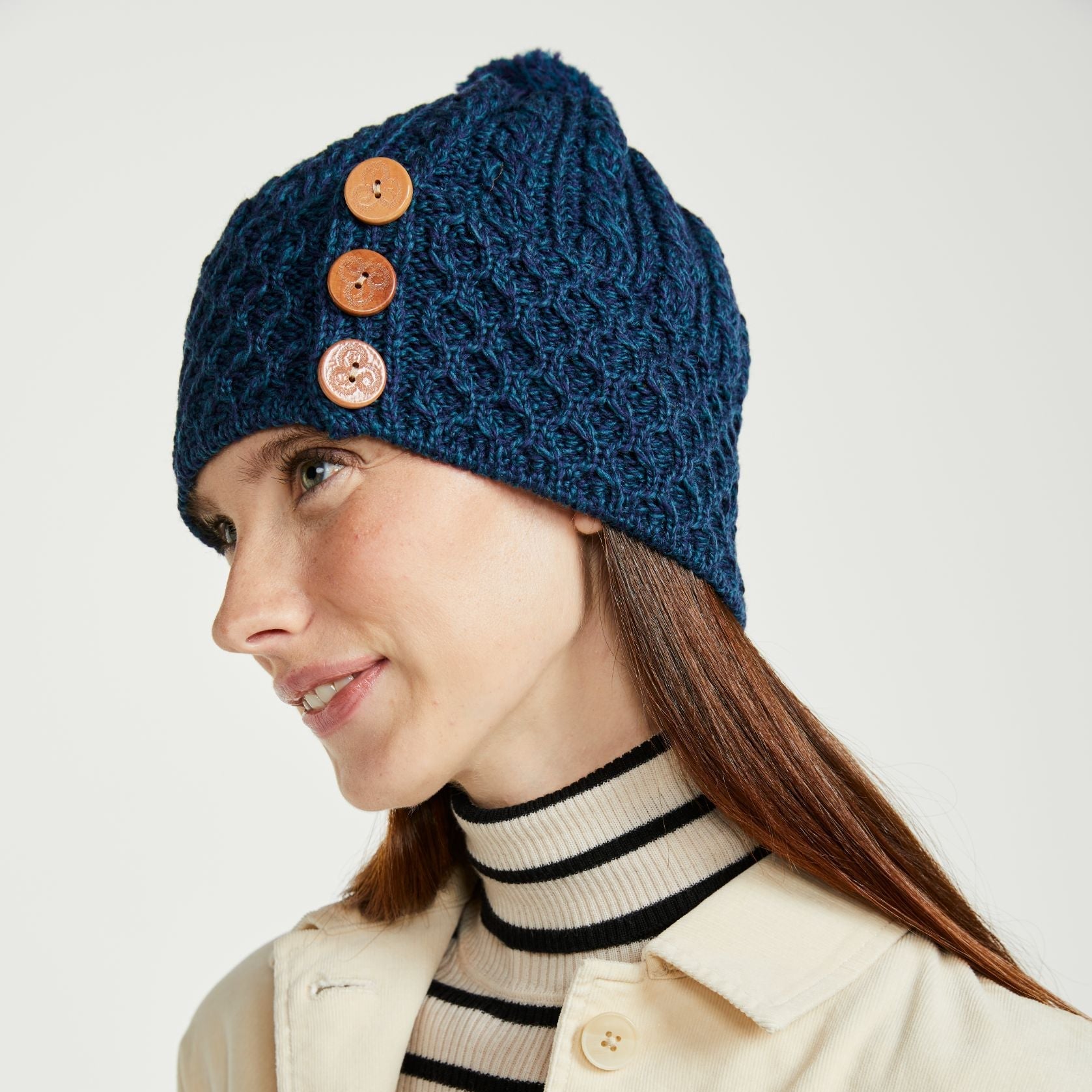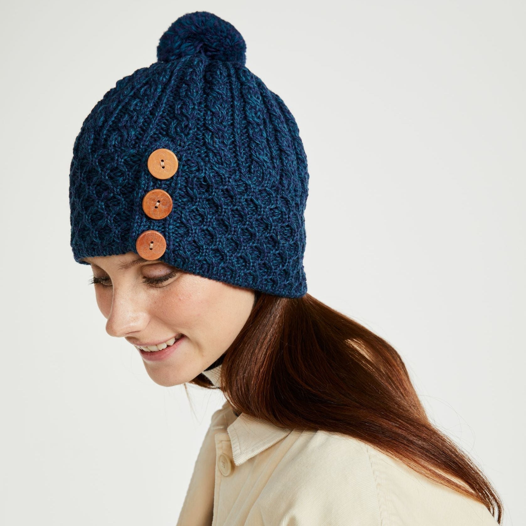 The Shrule Aran Hat with Pom Pom is a must-have accessory for anyone looking to combine style, warmth, and tradition. Perfect for outdoor adventures or cozying up on a cold day, this hat offers a unique blend of classic design and modern flair. Embrace the beauty and craftsmanship of authentic Irish knitwear with this charming and practical piece.
