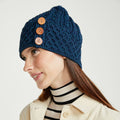 Stay warm and stylish with the Shrule Aran Hat with Pom Pom. Expertly crafted from 100% merino wool, this hat combines the rich heritage of traditional Aran stitching with modern design elements. The luxurious wool ensures exceptional softness and warmth, making it the perfect accessory for chilly days.