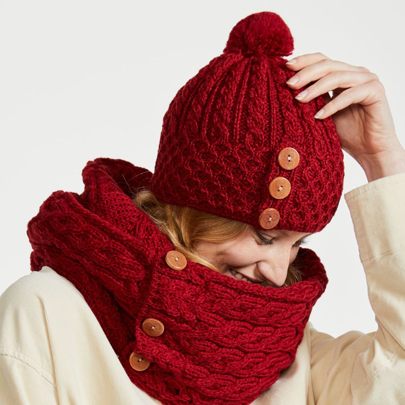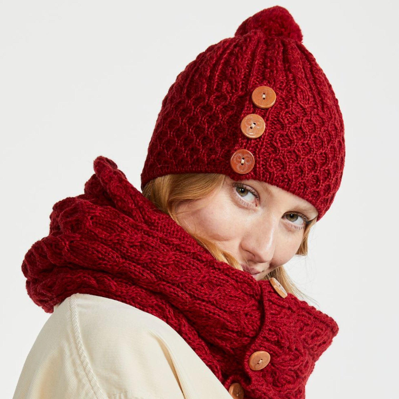 The Shrule Aran Hat with Pom Pom is a must-have accessory for anyone looking to combine style, warmth, and tradition. Perfect for outdoor adventures or cozying up on a cold day, this hat offers a unique blend of classic design and modern flair. Embrace the beauty and craftsmanship of authentic Irish knitwear with this charming and practical piece.
