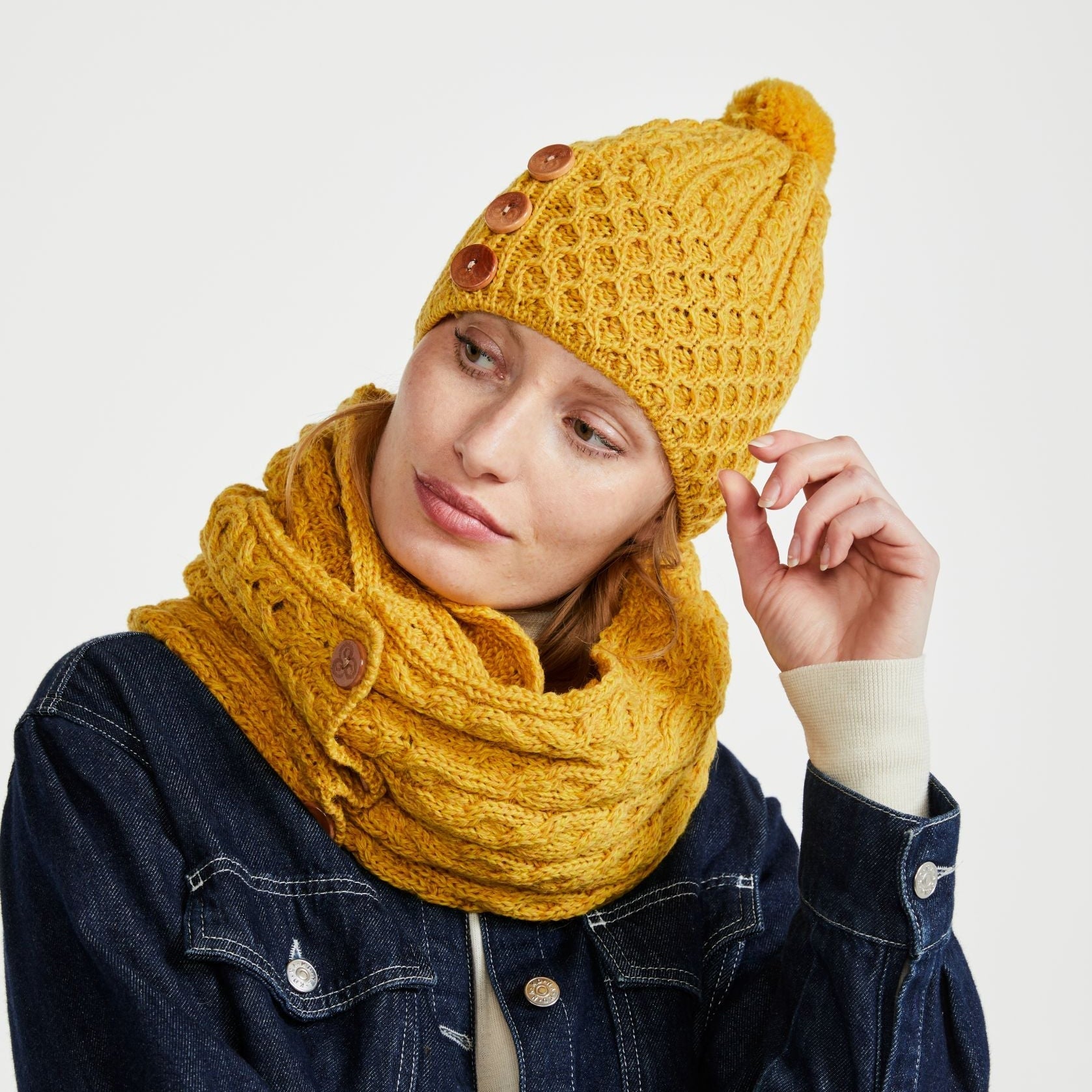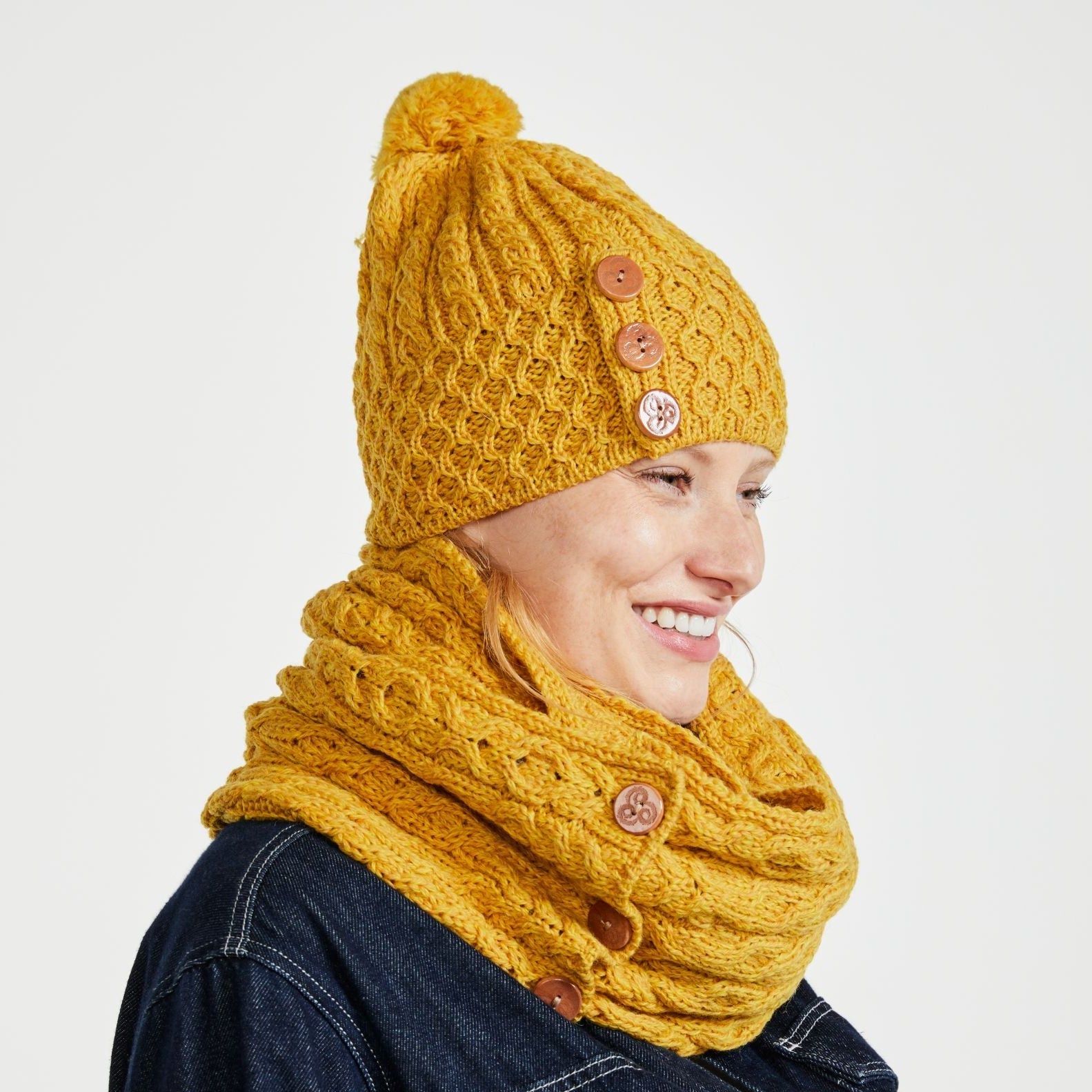 The Shrule Aran Hat with Pom Pom is a must-have accessory for anyone looking to combine style, warmth, and tradition. Perfect for outdoor adventures or cozying up on a cold day, this hat offers a unique blend of classic design and modern flair. Embrace the beauty and craftsmanship of authentic Irish knitwear with this charming and practical piece.