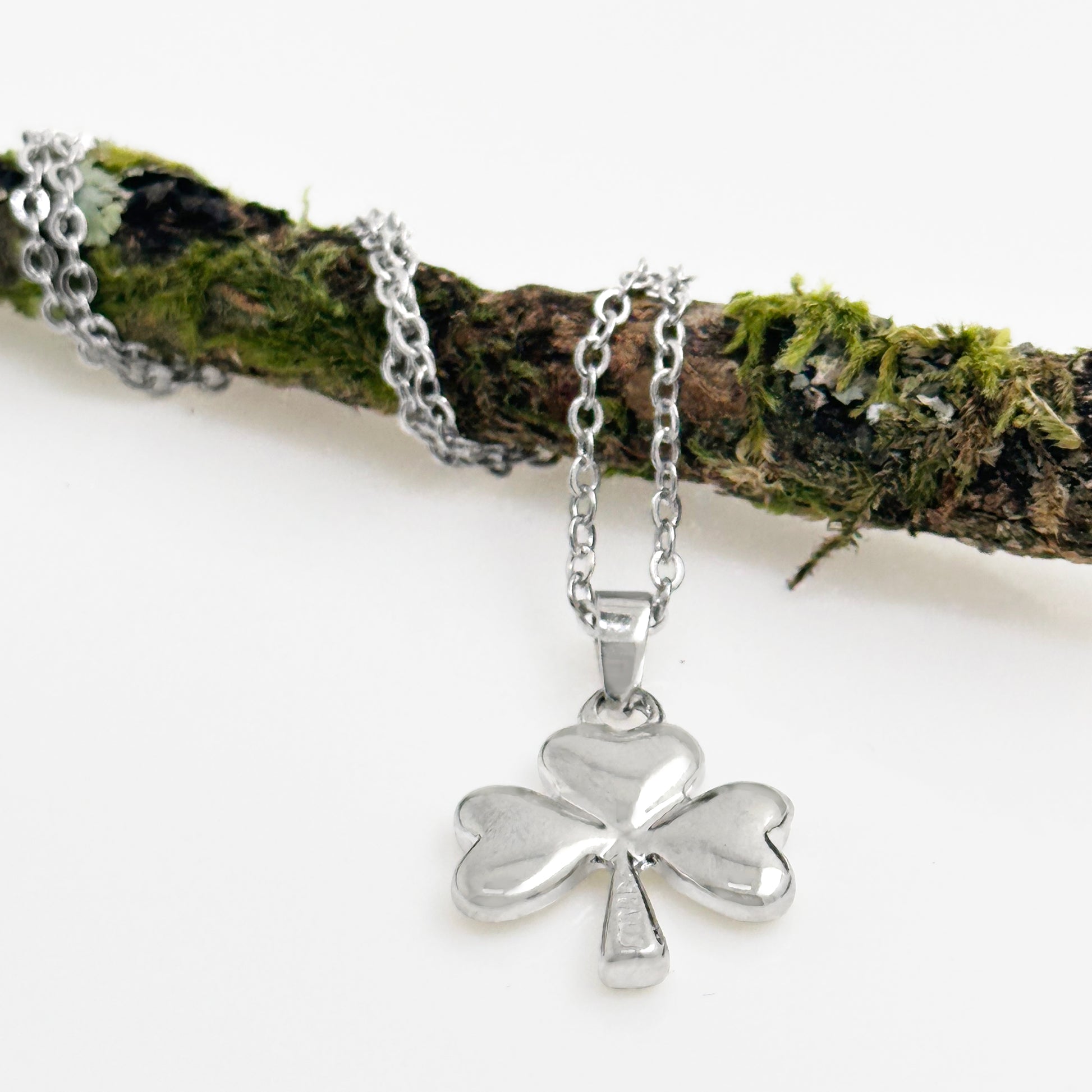 Rhodium Plated Lucky Shamrock Necklace