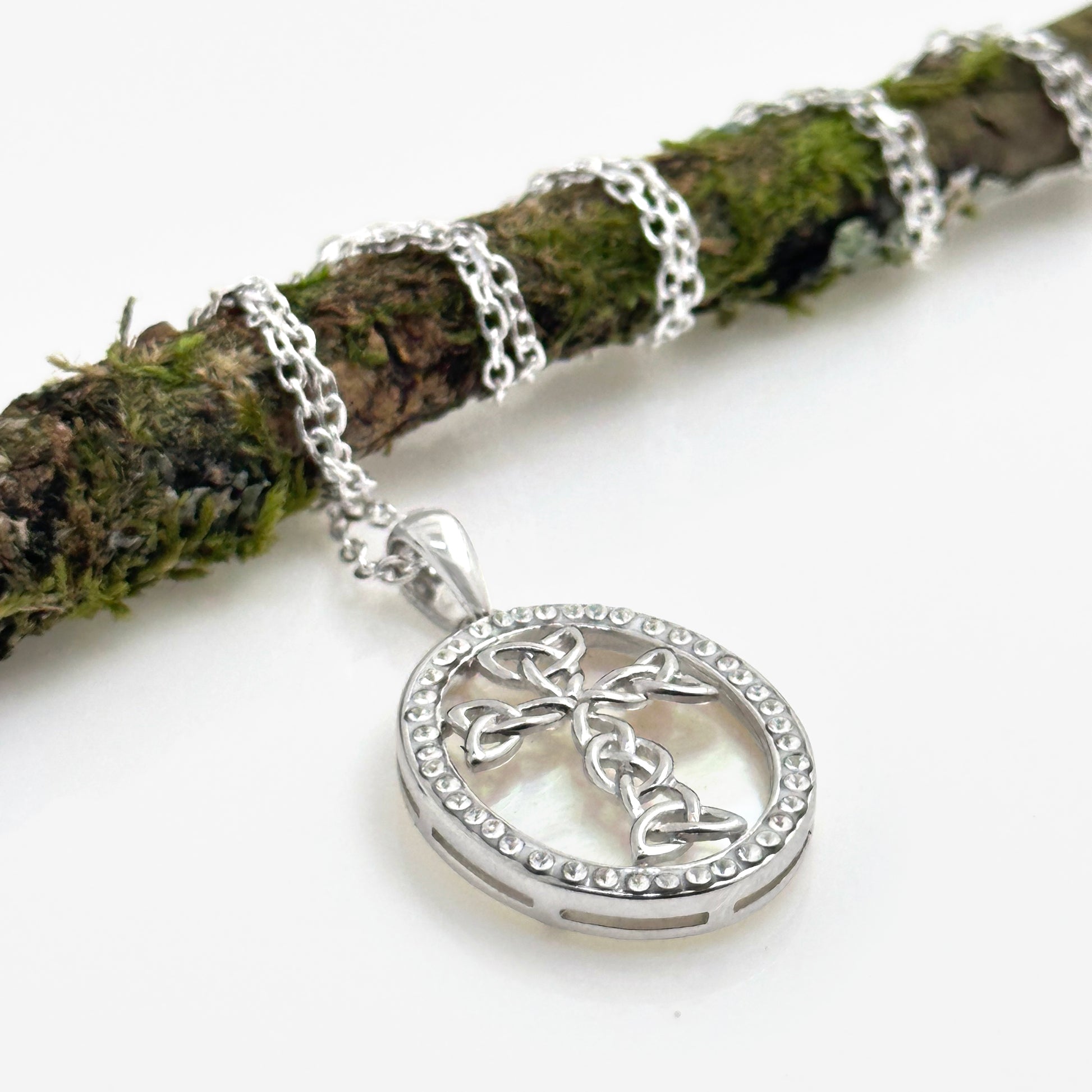 Sterling Silver Mother of Pearl Celtic Cross Necklace