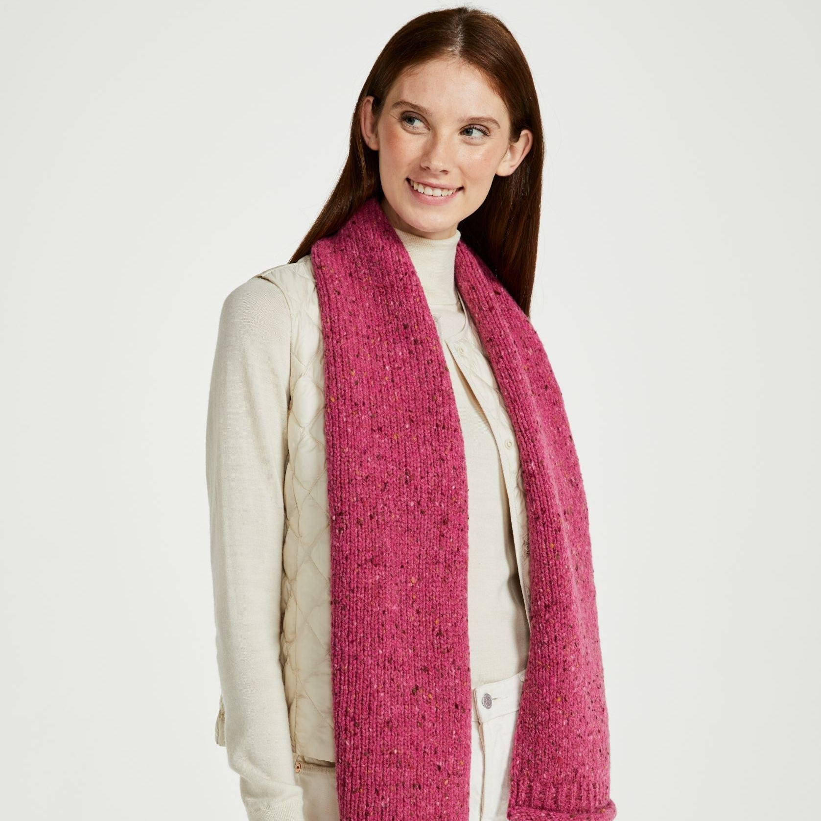This beauty of the Sliabh Bawn is the plain knit stitch, allowing the coloured nepps of the wool to take centre stage and bring a tweed like, textured look to the fore without overcomplicating it. The Sliabh Bawn is a great size, allowing you enough space to wrap yourself up in the brisk, cold weather and glide through winter with ease. This piece is the perfect match to our 100% Donegal Tweed, Hazelwood Roll Hem Beanie. Feel free to wear them as a pair or choose a contrasting hat to let the scarf have its moment.