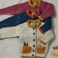 To us, this piece feels so quintessentially Aran, but with a welcomed pop of colour for some youthful exuberance. With a relaxed raglan sleeve and casual rolled neck and cuffs, comfort will never be far away with the Solas. We absolutely love the addition of two patch pockets, perfect companions for a nature trail or treasure hunt! Finished with six natural coconut buttons, we really do feel this piece is the perfect example of where practicality meets style.