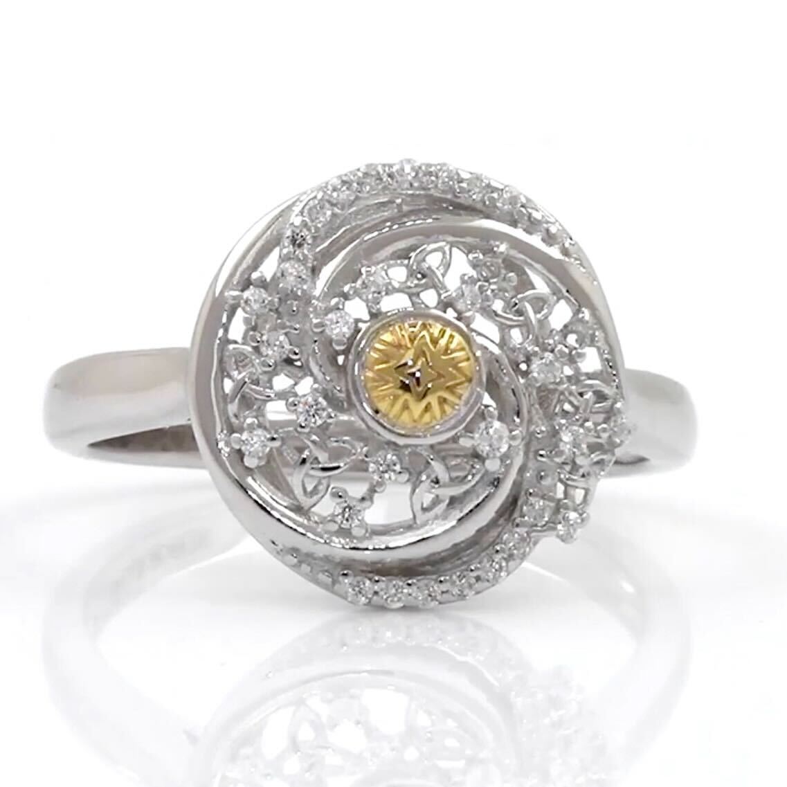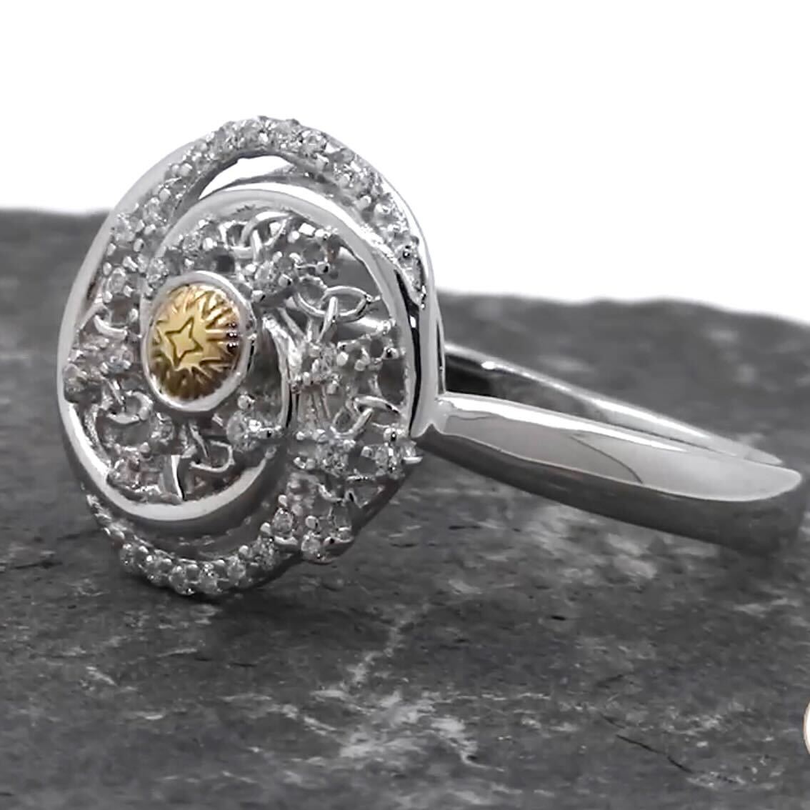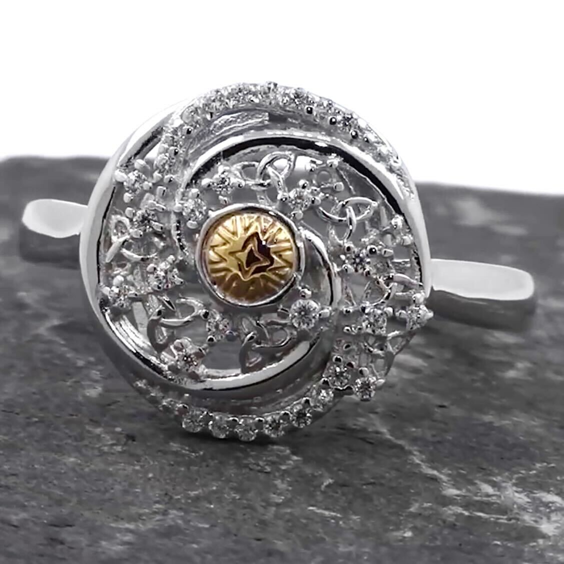 This superb Solstice Celtic Knot Ring with 18k Gold Bead is inspired by the Winter Solstice, a Celtic celebration of the shortest day and longest night of the year. It is thought to be a period of quiet energy, allowing you to take the chance to reflect on yourself and focus on what you want to achieve! The Winter Solstice is also a time to set goals and intentions for the coming year, examine and release your past and to make positive personal changes.