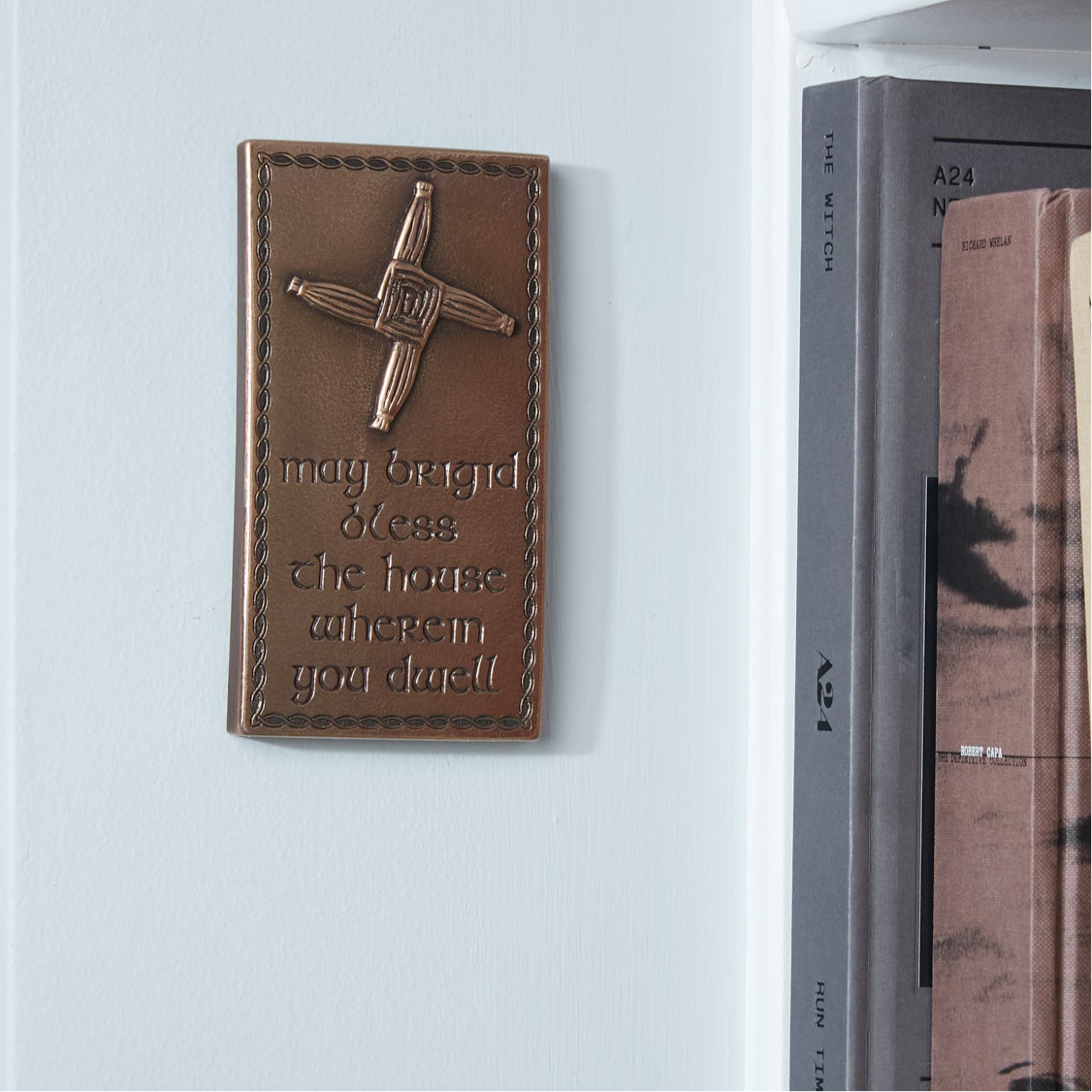 Usually woven from reeds, the St Brigid's Cross is widely thought to protect the home. This wall hanging also comes with a blessing. There are many folk traditions associated with St Brigid, which are still celebrated in rural Ireland today.