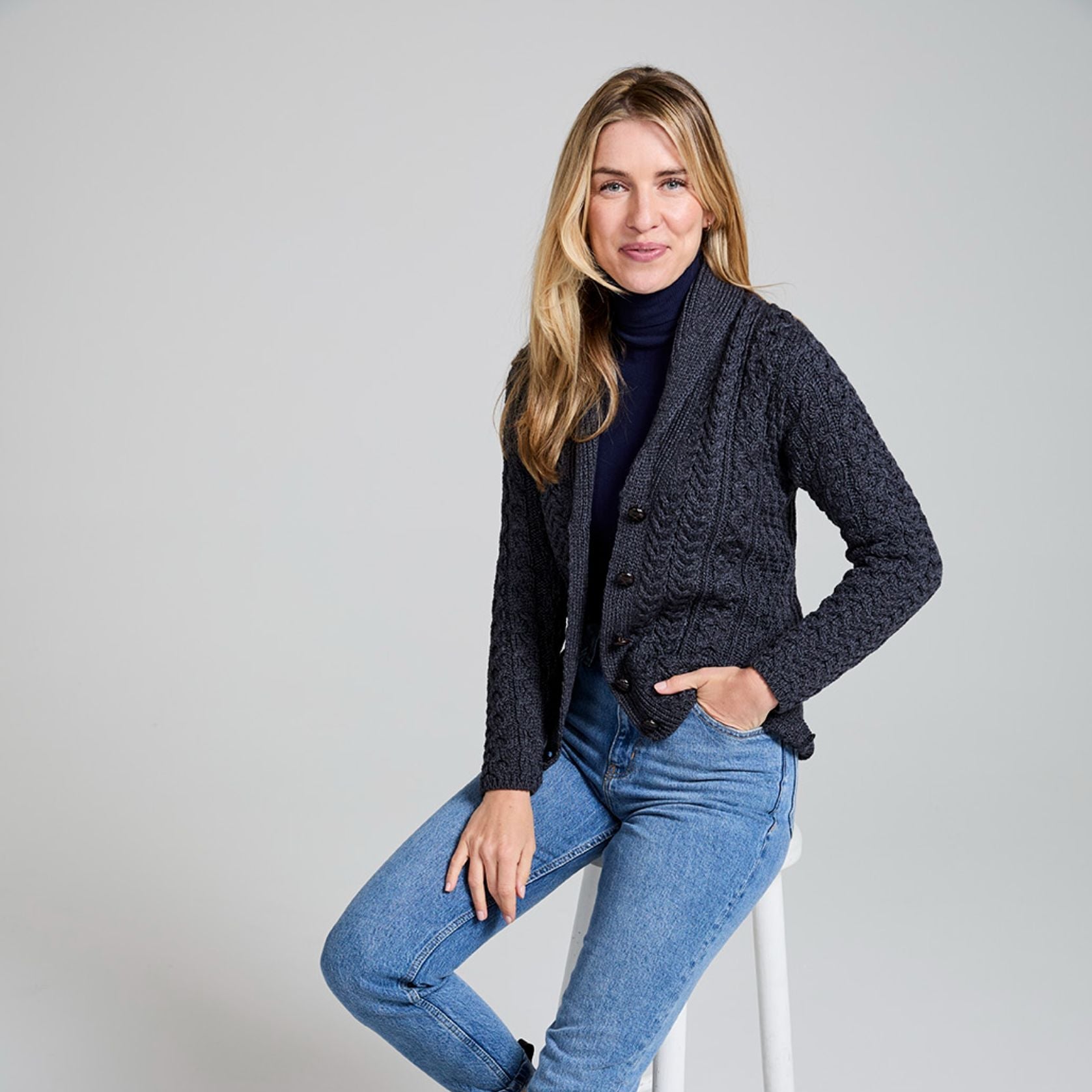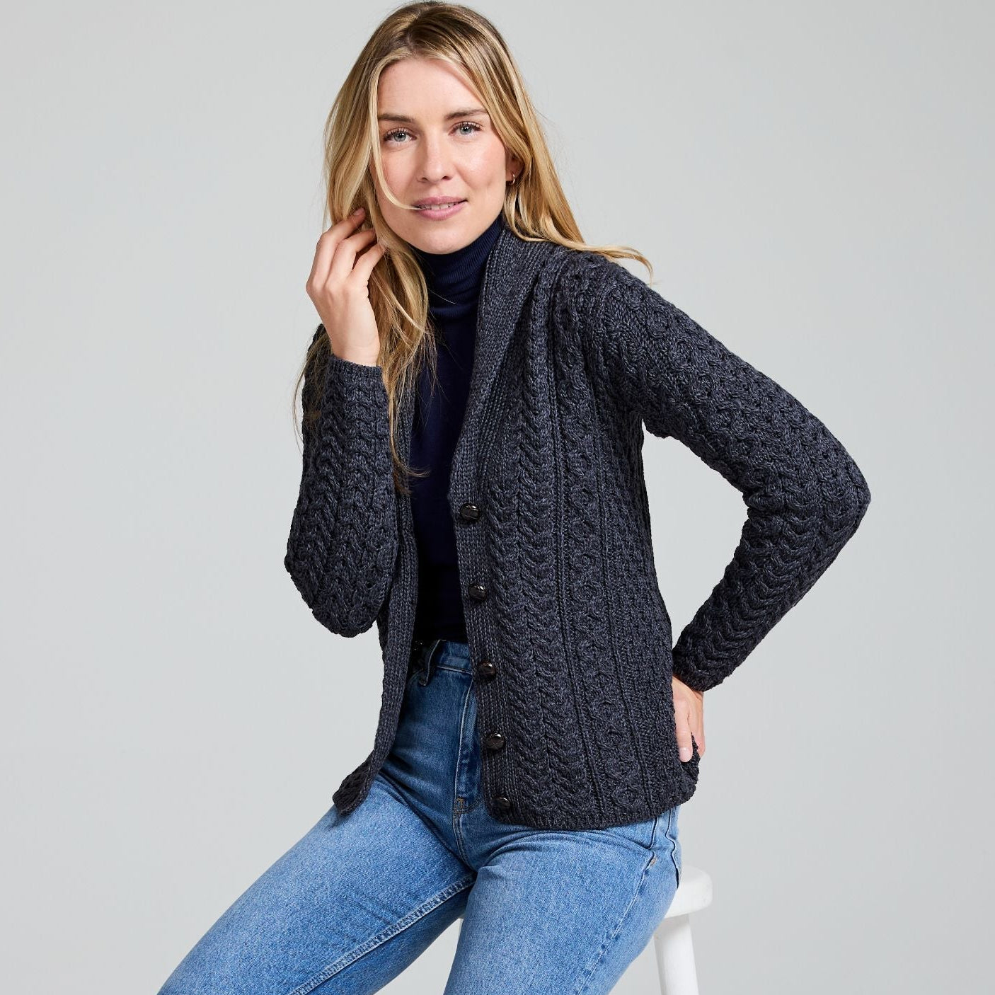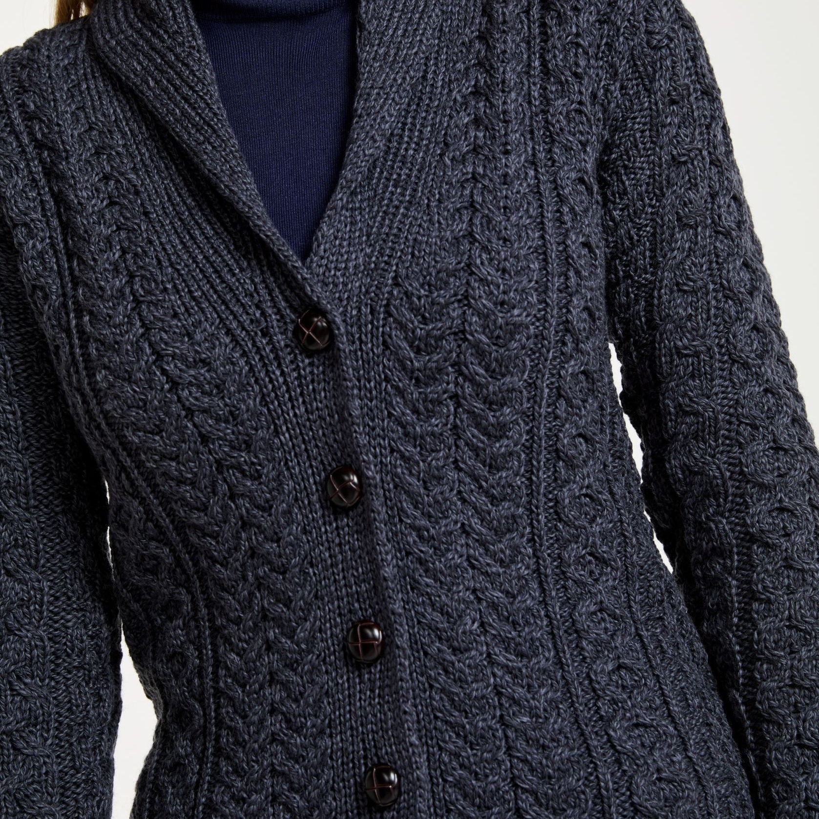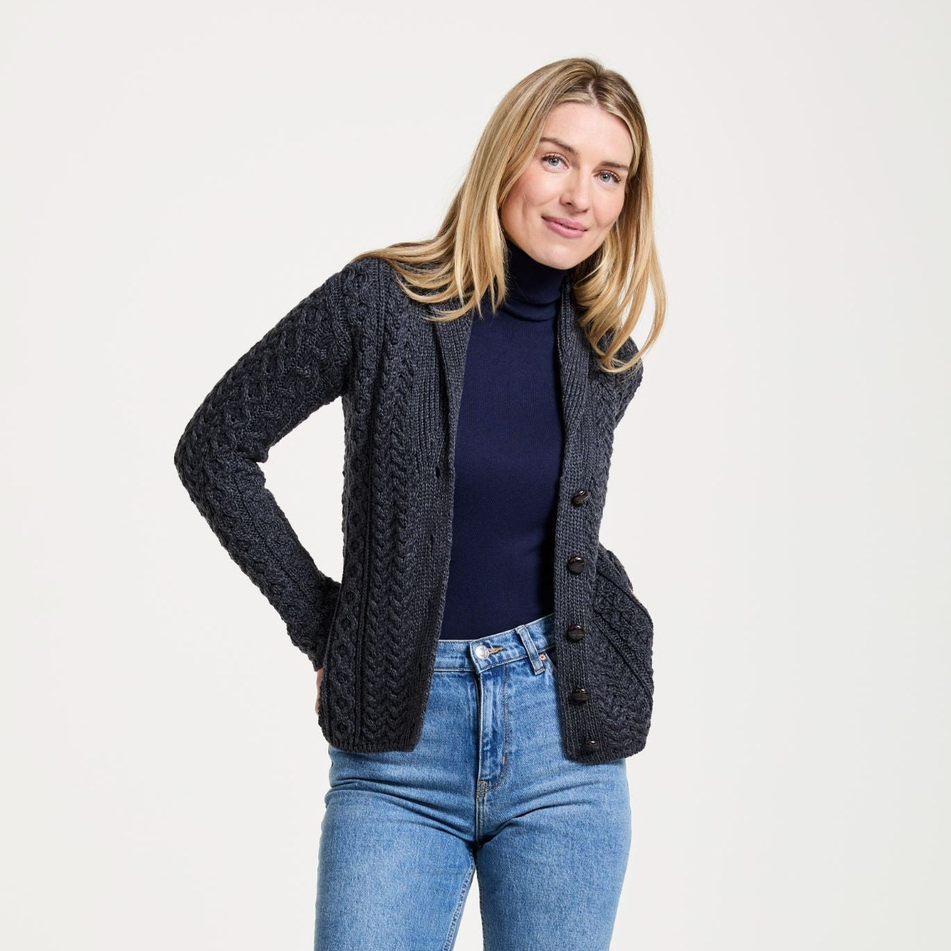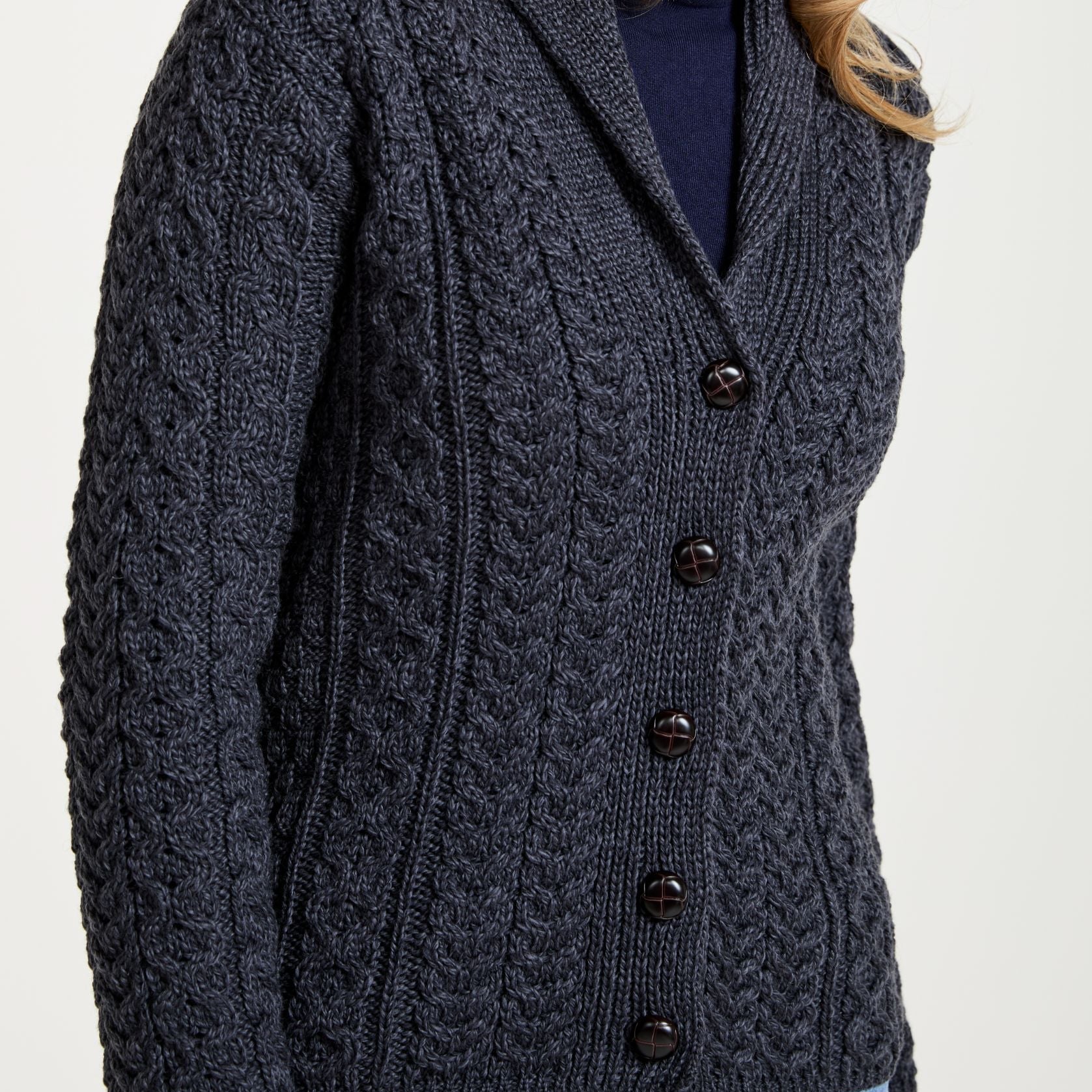 Tourmakeady Shawl Collar Aran Charcoal Cardigan