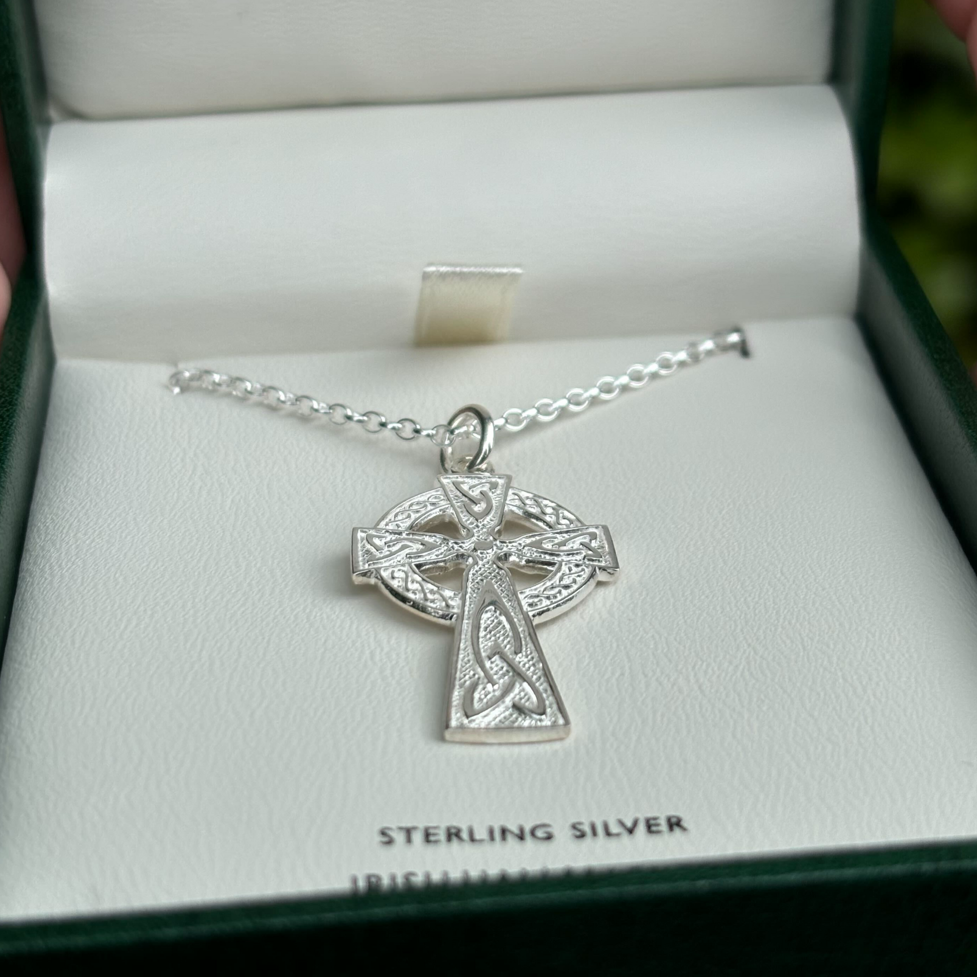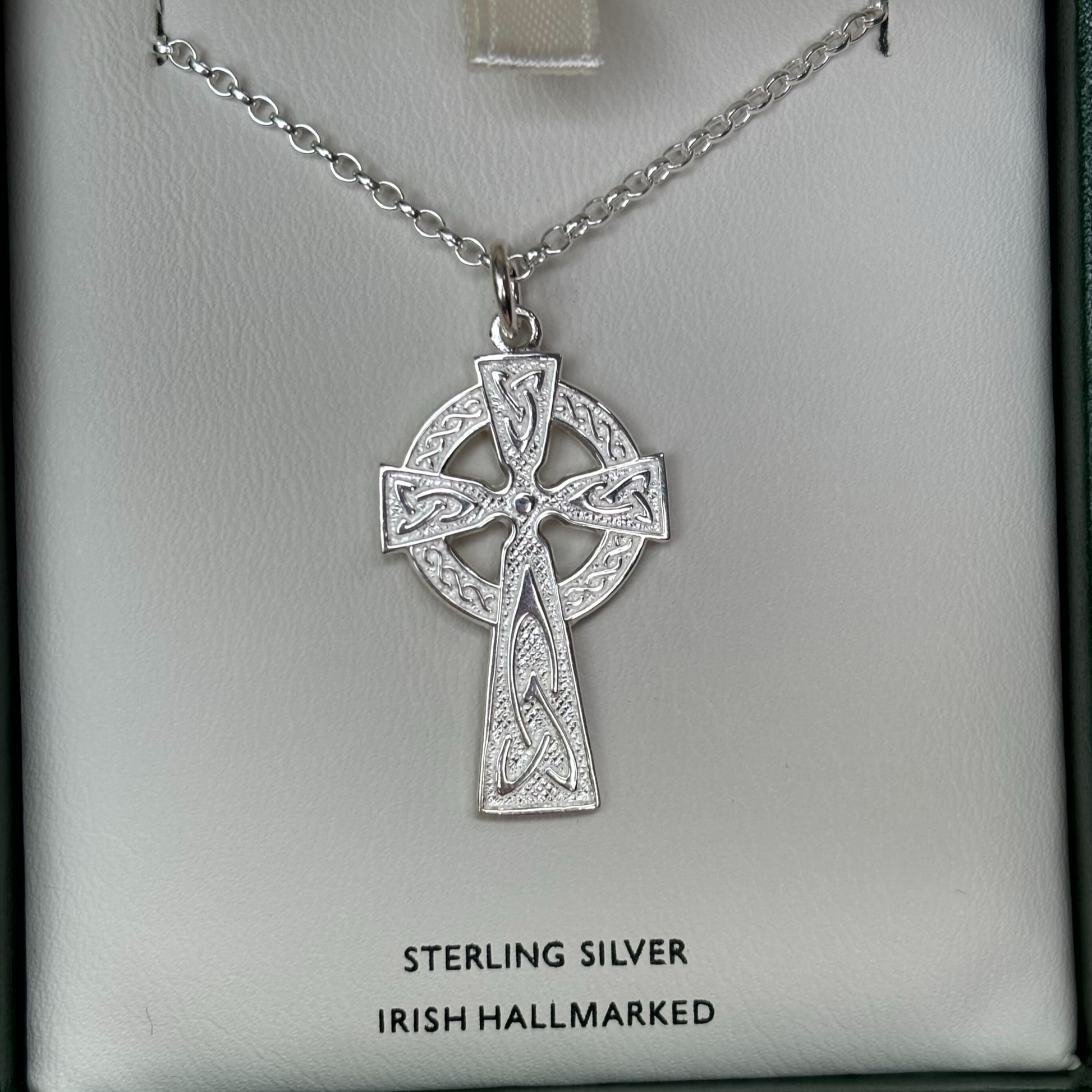 Inspired by Ireland’s high crosses, which are found at old crossroads and meeting points around the emerald isle to this day, this cross beautiful depicts the knotwork that Ireland’s celts were so famed for.