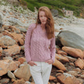 The Tralee Ladies V-Neck Pink Sweater is a refined piece of Aran knitwear with strong character and beautiful structure. Crafted from 100% Merino wool, it offers natural warmth with a soft, breathable feel that’s comfortable from morning through evening. The gently fitted cut creates a clean, flattering silhouette, while the sculptural cable knit flowing down the front adds depth and movement. An elongated central cable is framed with rope detailing, drawing the eye and giving the sweater a balanced, confident look. The V-neck is finished with double cable trim, and trellis patterns at the hem and cuffs complete the design with subtle texture and strength. The Pink shade brings warmth and individuality, making it easy to style while still standing out.