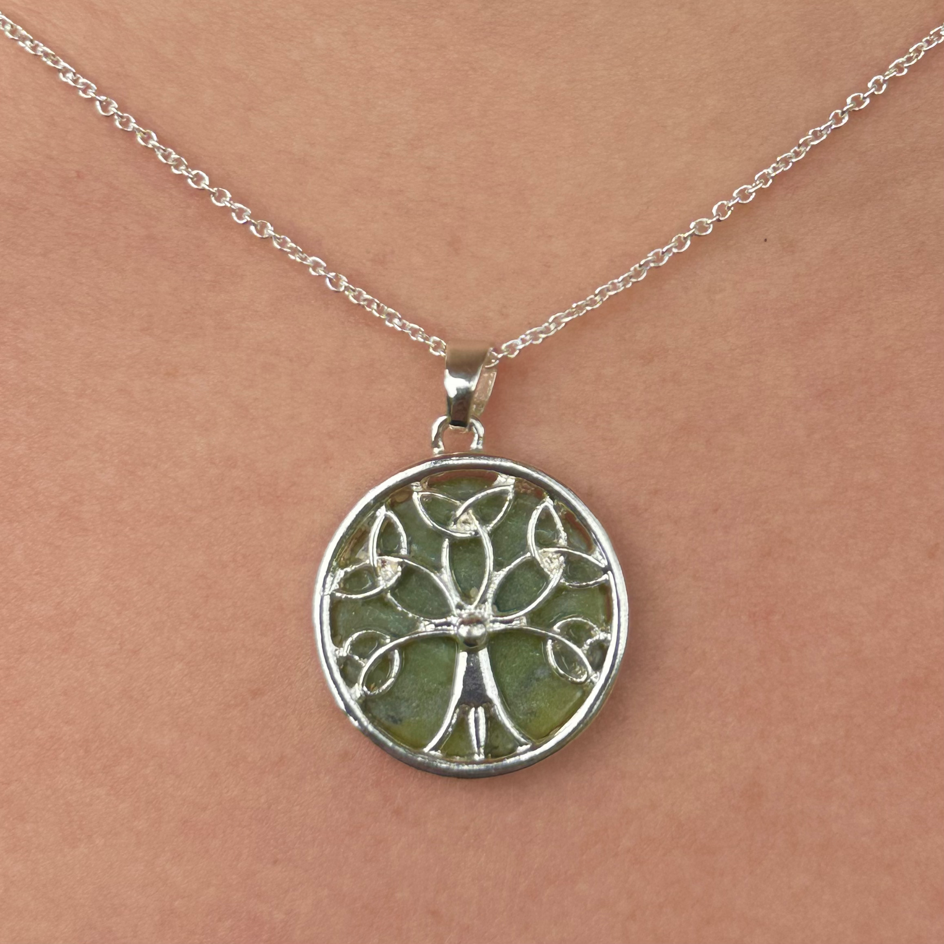 This design forms the shape of the tree branching out with our Connemara marble set discreetly behind the frame. The contrast of colour between the marble and the silver is so striking.
