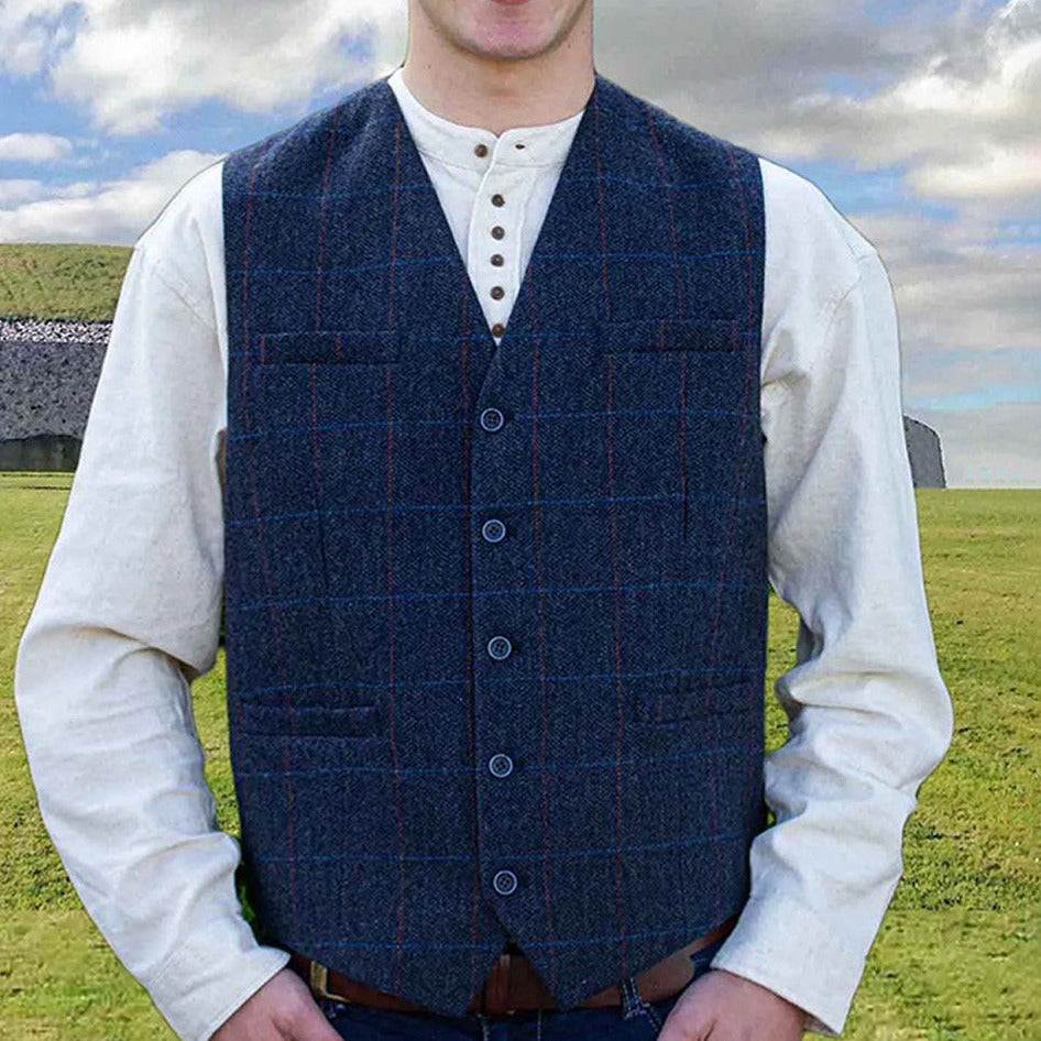 Tweed Herringbone Overcheck Waistcoat - Blue