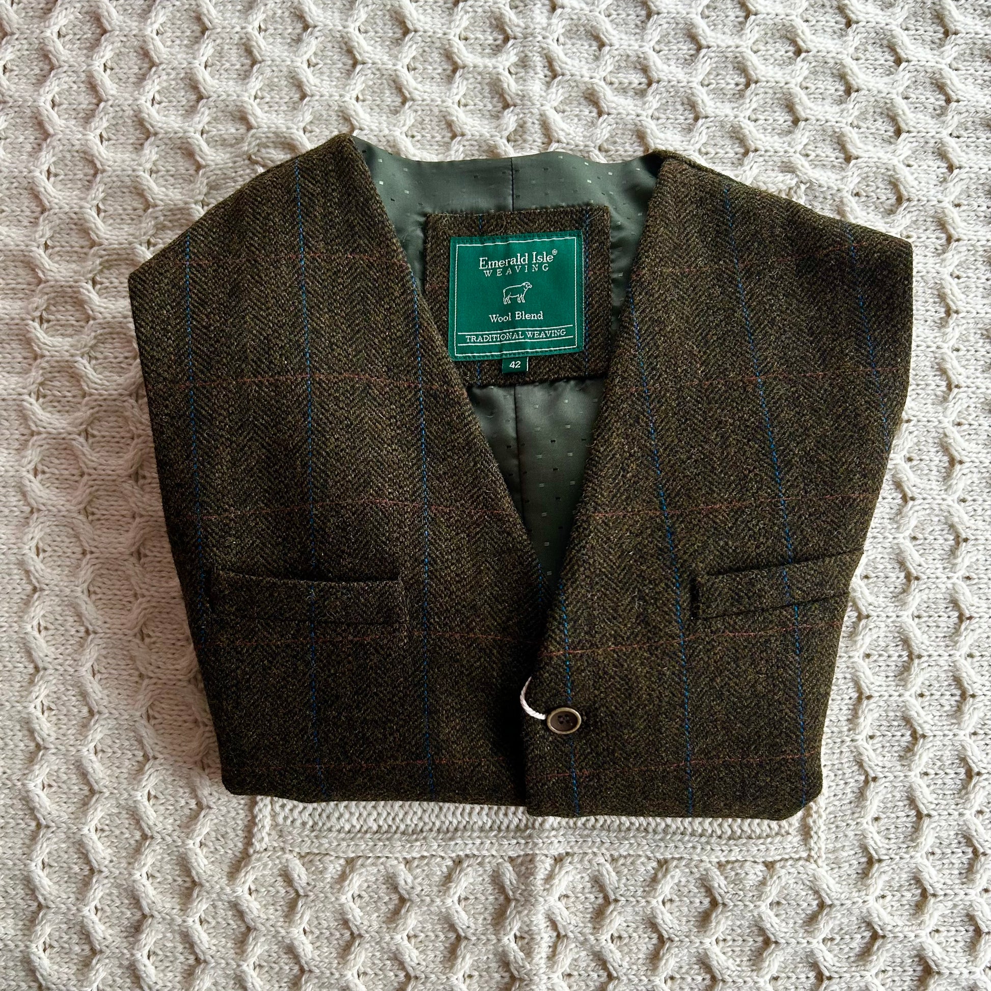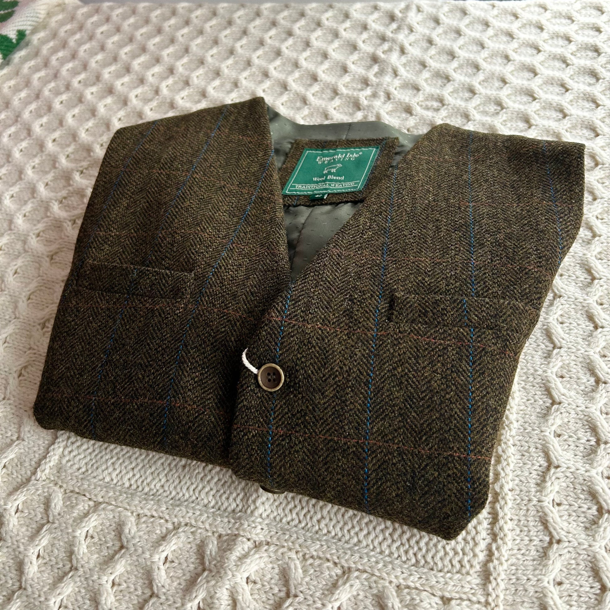 Tweed Herringbone Waistcoat - Olive Overcheck