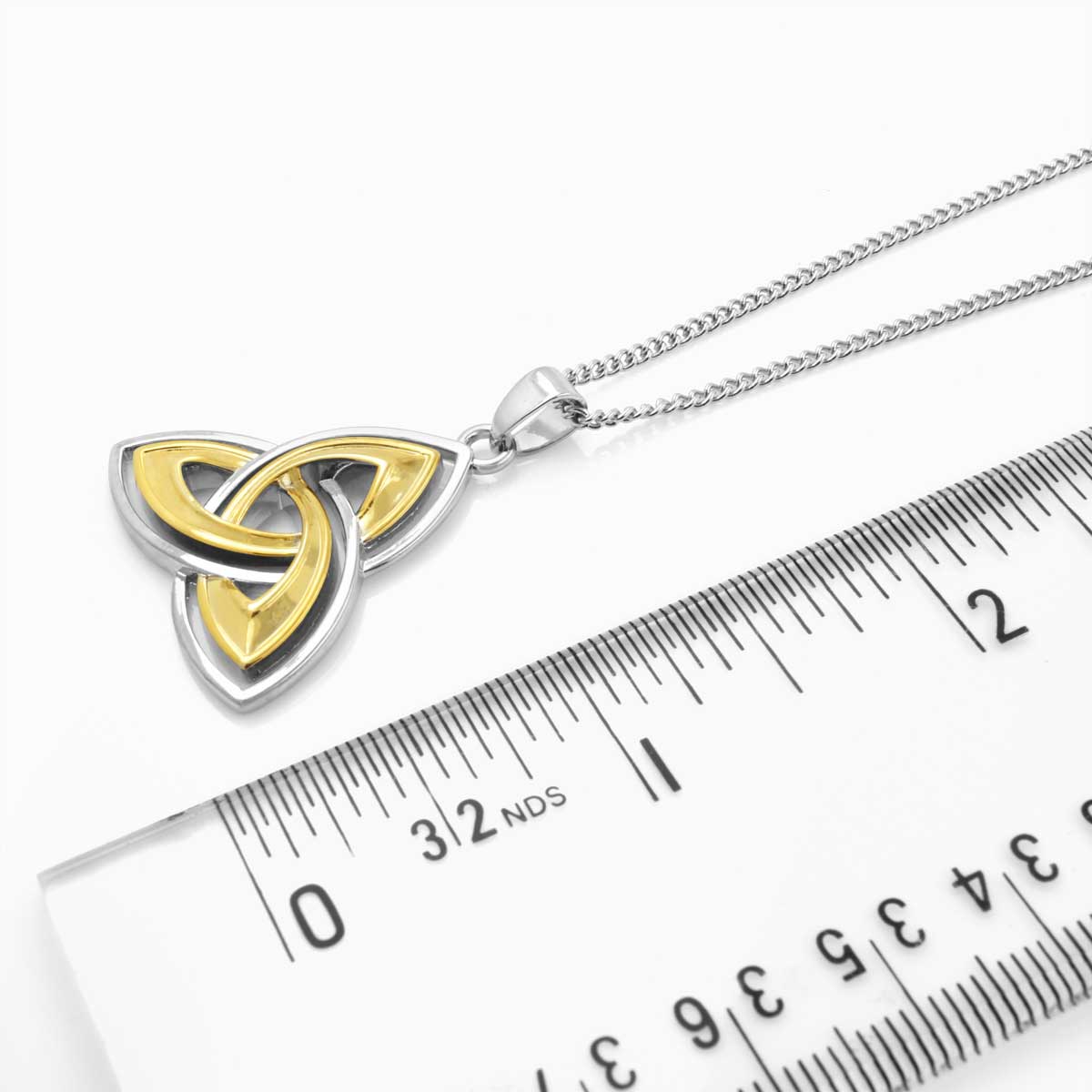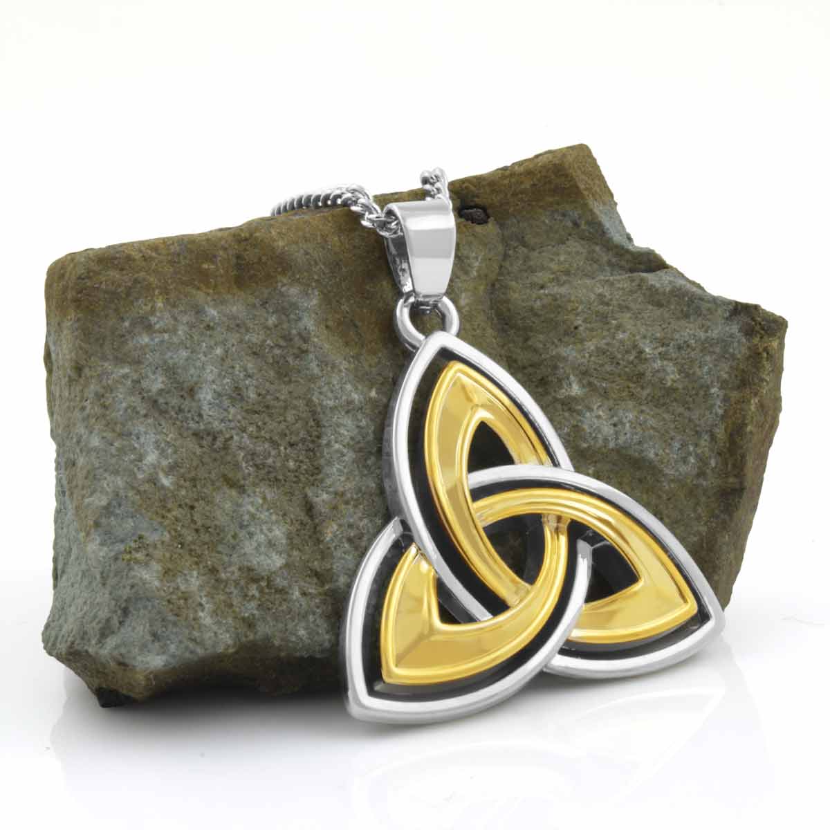 Introducing our Two-Tone Trinity Knot Pendant—a symbol of enduring connection and refined elegance. Carefully crafted, this pendant showcases the iconic Trinity Knot in a captivating blend of silver and gold tones. The harmonious two-tone design enhances the intricate detailing, creating a timeless piece that seamlessly weaves Celtic tradition with contemporary style.