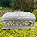 This stunning vintage style jewelry box features embossed Celtic & Claddagh designs, and has been handcrafted using revived ancient pewter crafting techniques.