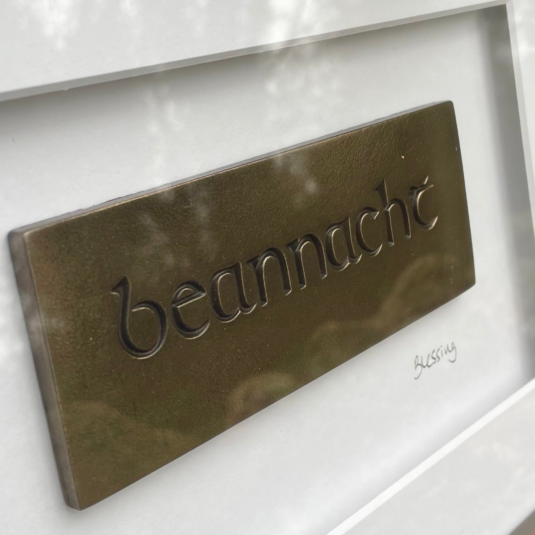Beannacht, which means blessing, is part of a series of pieces which celebrates Irish words. Words have been cherished in Ireland since the first lines were carved on Ogham stones and they are celebrated in the song, poetry and the art of everyday conversation.