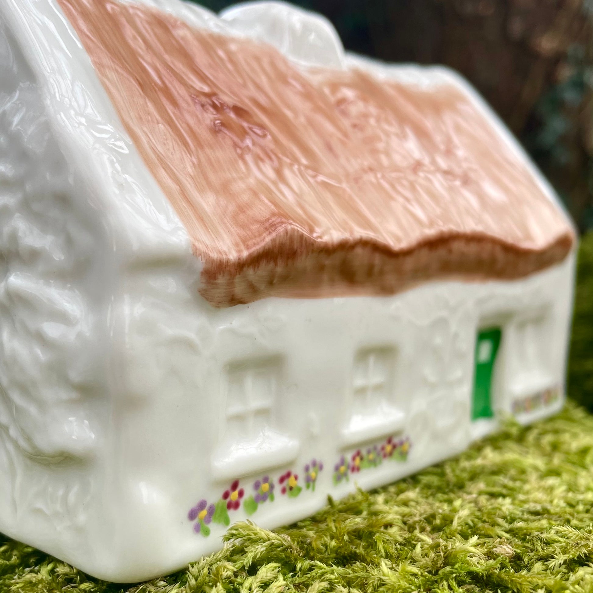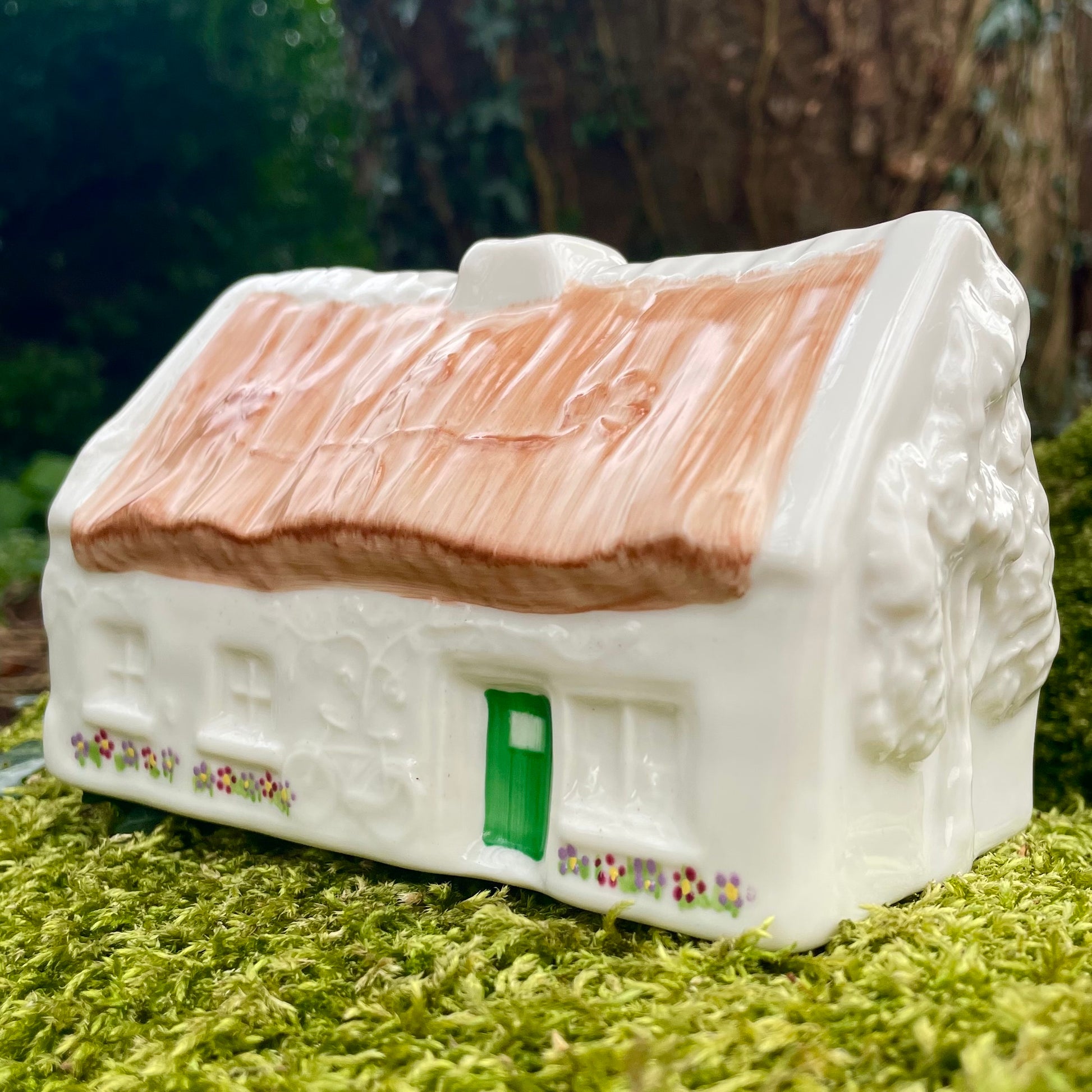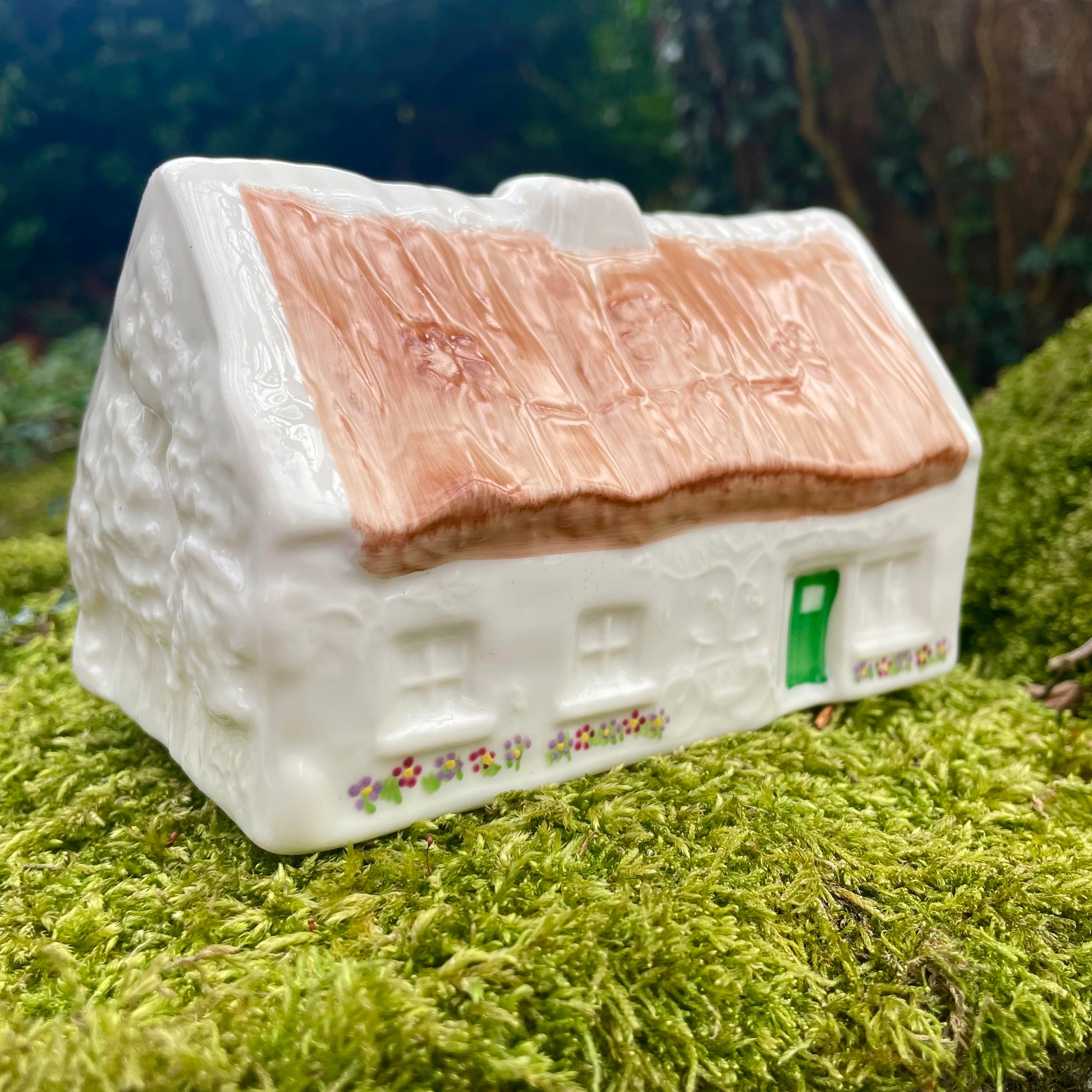 This replica of the Quiet Man thatched cottage seen in the movie is handmade in Fermanagh, Ireland at the Belleek workshop. We have visited the workshop of Belleek and saw first hand how each piece is beautifully hand painted and created from scratch.
