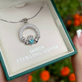Introducing our March Birthstone Aquamarine Silver Claddagh Pendant, a timeless piece adorned with the captivating aquamarine gemstone, symbolizing purity, tranquility, and harmony. Celebrate the essence of March birthdays with this exquisite Birthstone Pendant, meticulously crafted to embody the enduring beauty of Irish tradition.