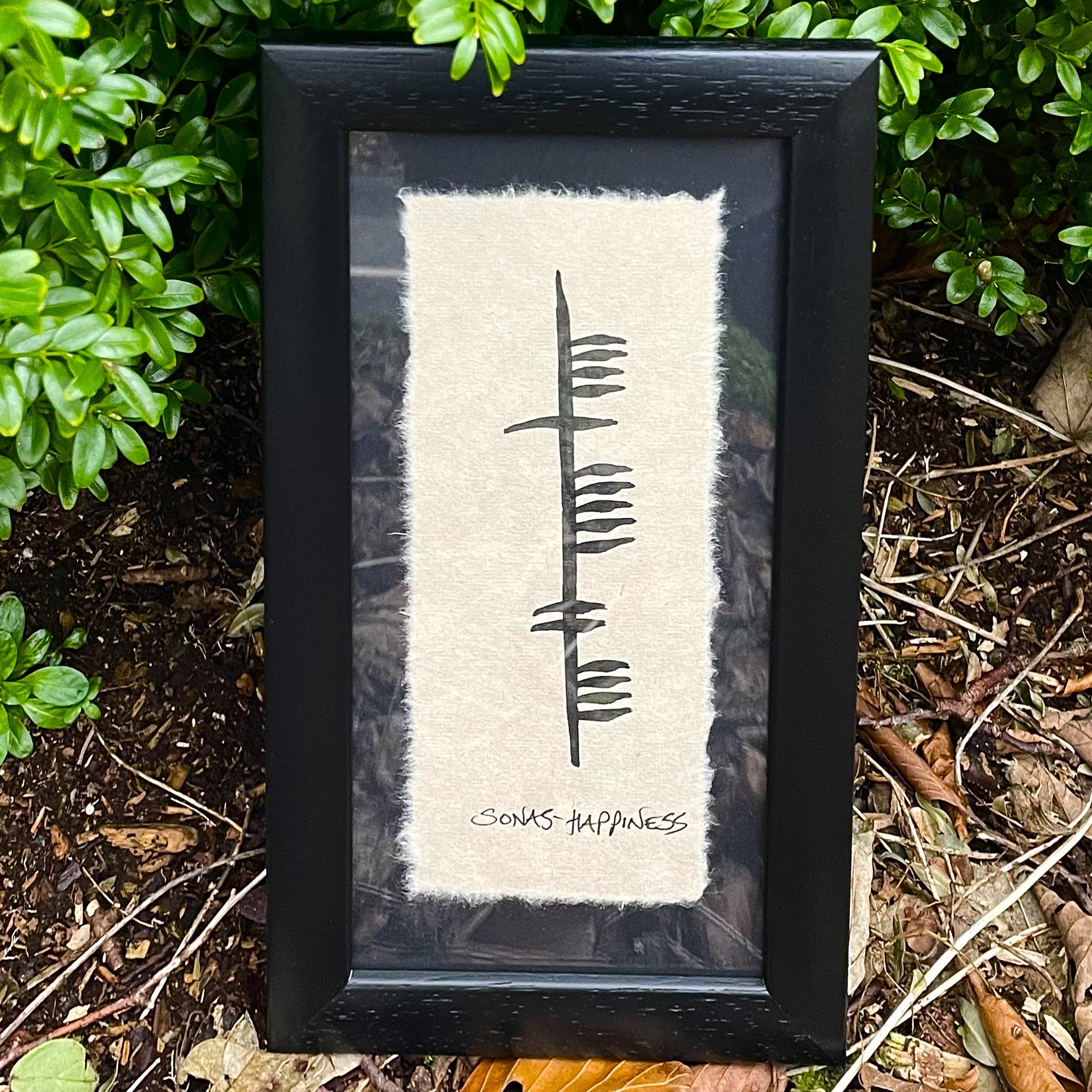 This framed Ogham Wish is a wonderful gift suitable for a great number of unique and important occasions including weddings, housewarmings, newborn gifts, and birthdays. Each individual piece is handpainted on handmade paper by Ethel Kelly in Co. Roscommon, Ireland.